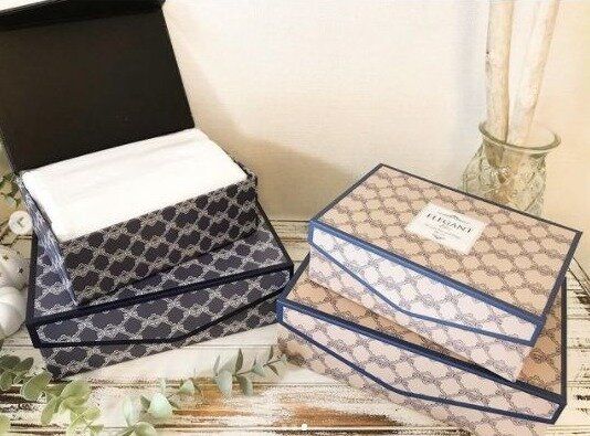 大理石柄のペーパーボックスは、ふたにゴールドのロゴが入っていて高見えします。置いておくだけで海外インテリア風のおしゃれな雰囲気に。