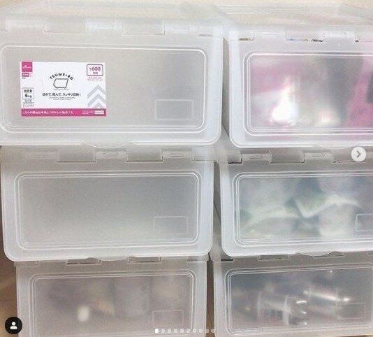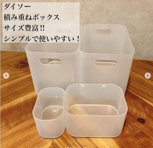 ダイソーの積み重ねボックスはシンプルなデザインでサイズの豊富なので使い勝手も抜群。中が透けて見えるので見せる収納には少し使いにくいですが、ハンドメイドが好きな人はぜひ自分好みにアレンジすることでインテリアに合ったおしゃれな収納ボックスに大変身します。