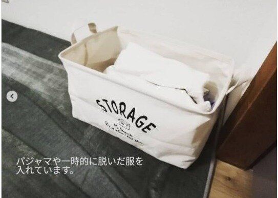 ダイソーの収納ボックスはものを収納するだけでなく、脱いだ服を一時的に入れておく場所としても使えます。このボックスがあれば、床に服を脱ぎっぱなしにすることもなくなりそうですね。