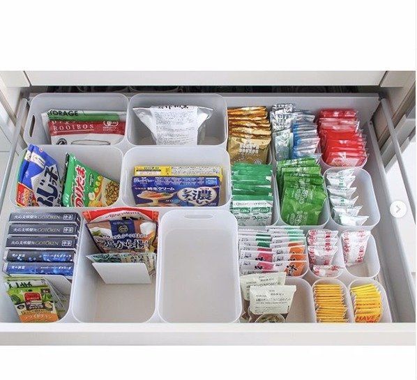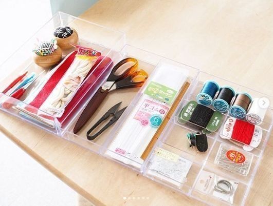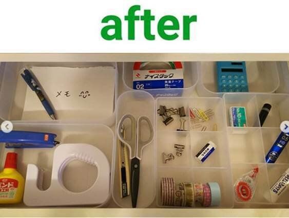 こちらは、引き出しの中を積み重ねボックスで仕切ったアイデアです。いろんなサイズがそろう積み重ねボックスは、組み合わせも無限大。こんな風に、引き出しの中もぴったりとシンデレラフィット!文房具も見やすく、取り出しやすいですね。