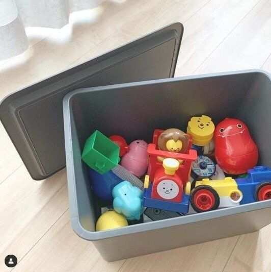 ふたつき収納ボックスにはカラフルおもちゃを収納