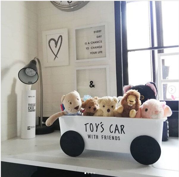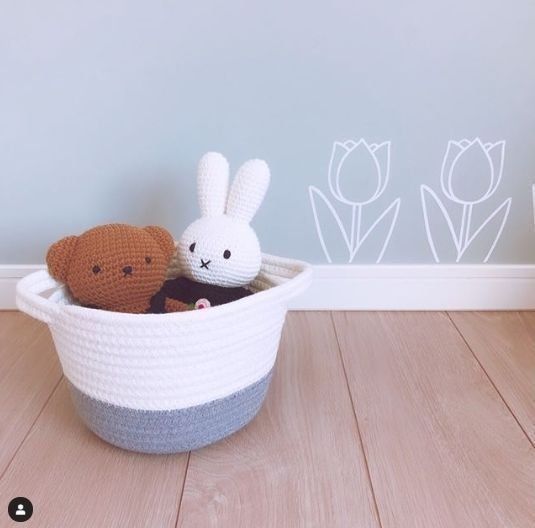 小さな子どものおもちゃを入れるのにもよいですね。同じような編み物のぬいぐるみを入れれば、統一感も出ておしゃれです。ダイソーで人気のアイテムですので、お店で見かけたら、ぜひ手に取って見てみてください。サイズやカラーも種類がありますよ。