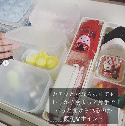 冷蔵庫の整理整頓にダイソーの積み重ねボックスが一番使い勝手がいいとSNSでも愛用する人が続出しています。取っ手穴が開いているので取り出しやすく、ほどよく中が透けて見えるので中身の確認もしやすく食品ロス対策にもなります。