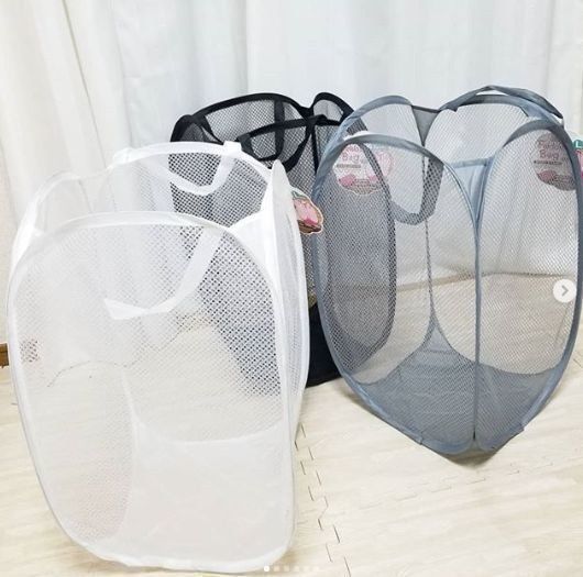 カラフルなものやイラスト入りのものが多いホッピンバッグ。洗濯ものを入れたり、おもちゃ箱に使ったりと何かと便利な収納バックです。ダイソーにはホワイト、グレー、ブラックのシンプルなカラーがあります。モノトーンならどんなインテリアにも合わせやすいですね。小さくたたむこともできるので、何かのときのために用意しておくのもよさそうです。