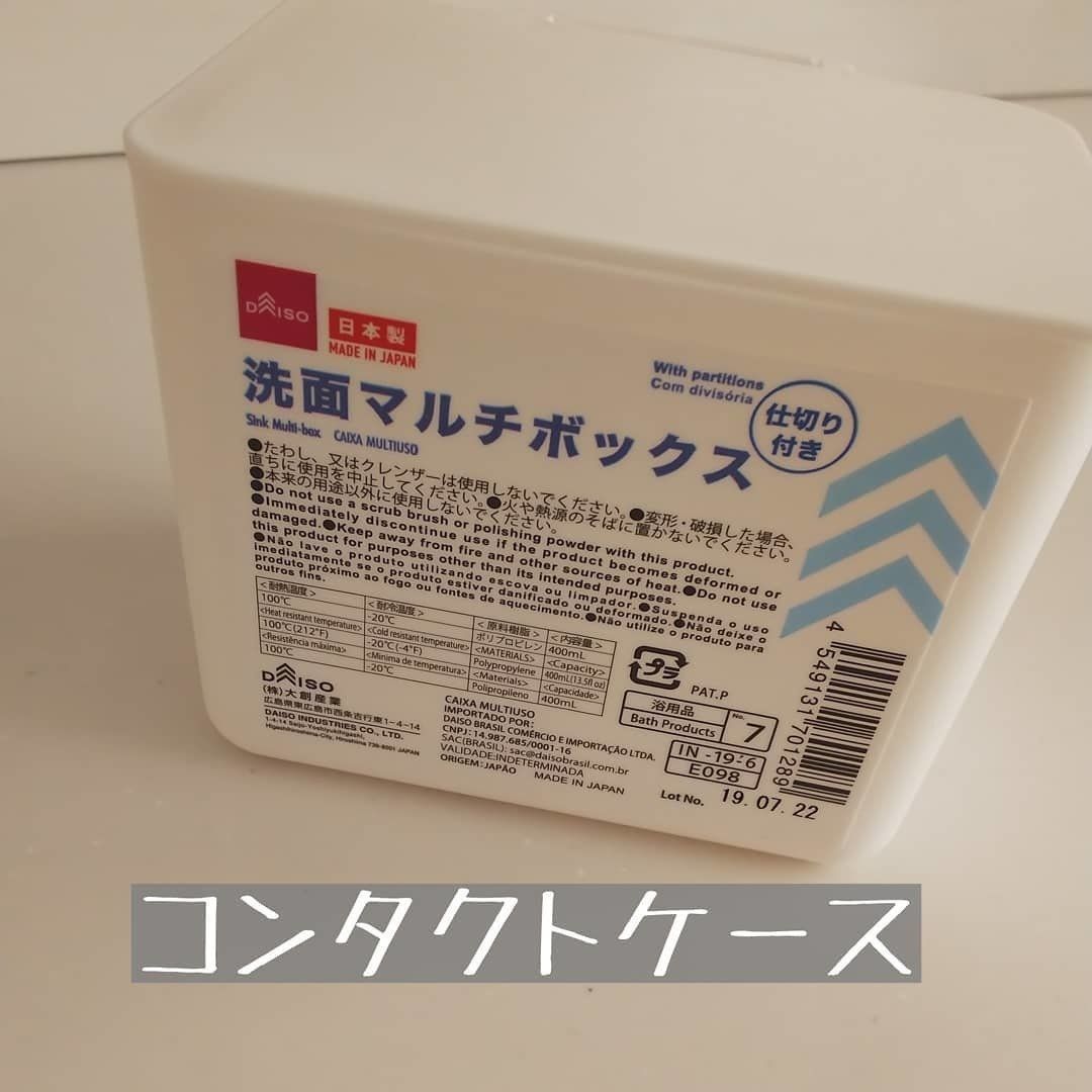 中央に仕切りがある洗面マルチボックス。ふたつきなので洗面所のこまごましたものをすっきり収納できます。こちらのかたはコンタクトケースとして使っているそうです。