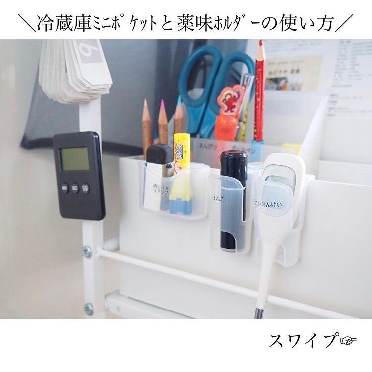 薬味ホルダーが活躍するところは冷蔵庫だけじゃないんです。迷子になりがちな体温計やハンコなどの小物がシンデレラフィット!プチストレスが解消されること間違いなしです。