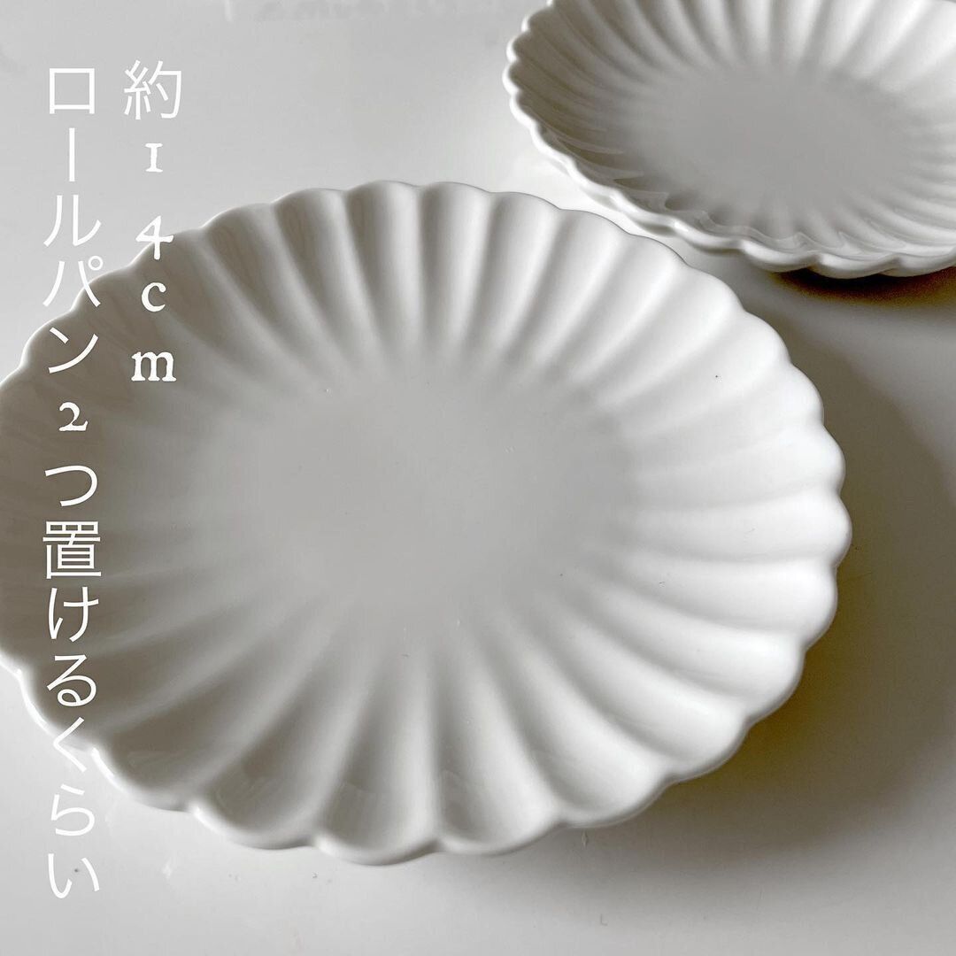 白い花を思わせるプレートは、パンやケーキ、フルーツを盛りつけるのに重宝しそうです。洋食だけでなく、和食にも使えそうなデザインなので、いくつか持っておきたいアイテムです。