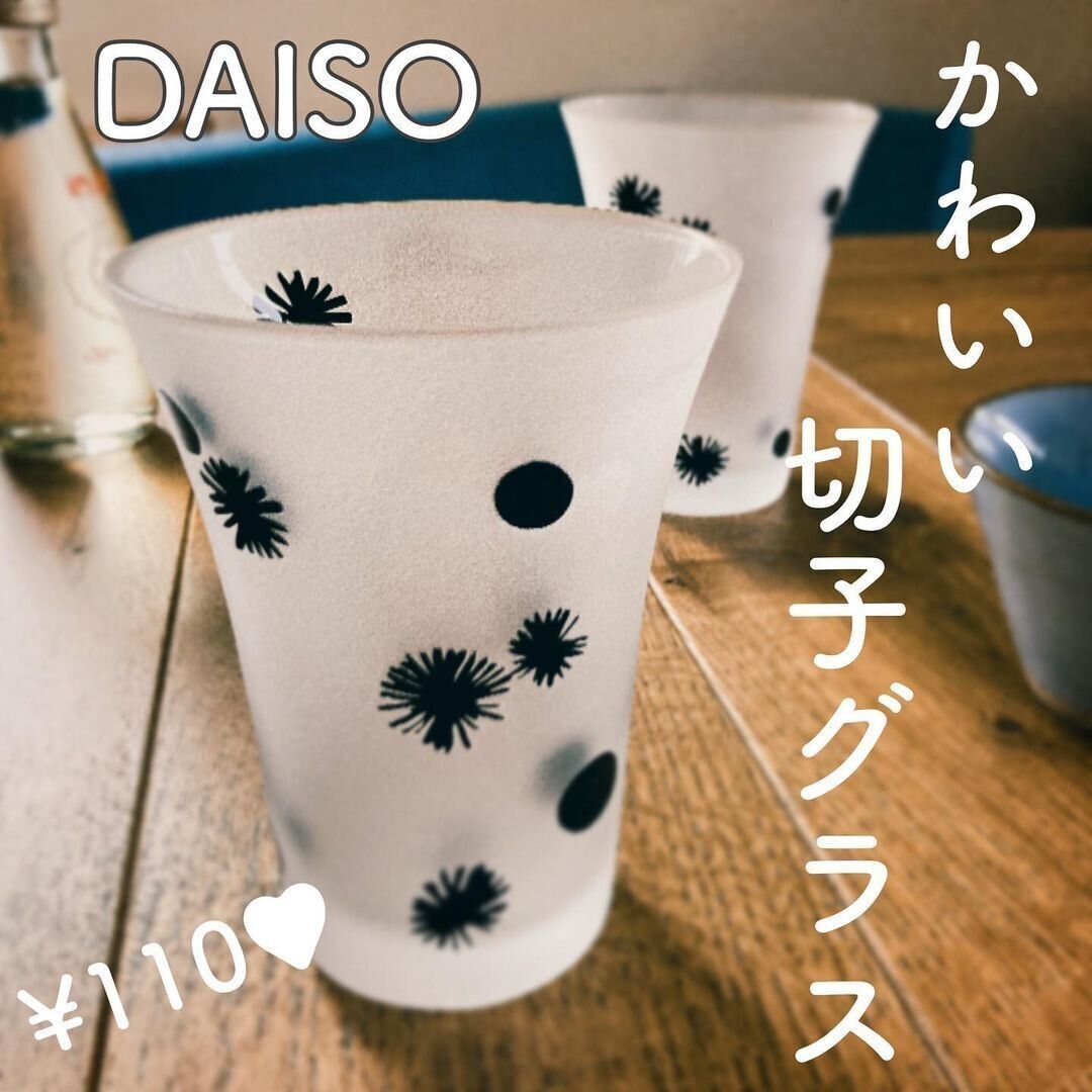 ダイソーでは、110円で切子グラスが買えると話題です。モノトーンでどこかレトロな和モダン柄のグラスは、冷酒を入れるにぴったりのアイテム。自宅で冷たい飲みものを飲む機会が多いかた、切子グラスを試してみたいというかたにおすすめです。