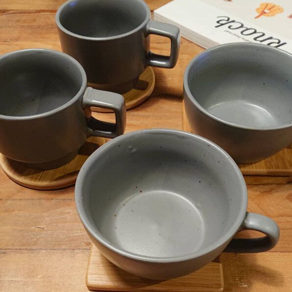 グレーのスープマグが和にも洋にも使えて便利