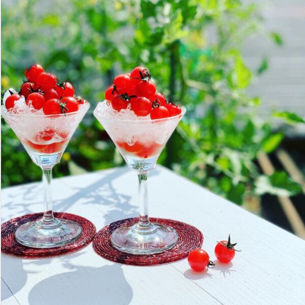 涼し気なミニトマトを盛りつけているこちらのおしゃれなカクテルグラスもなんとダイソーアイテムなんです。カクテルグラスに盛りつけるだけでまるで高級ホテルの前菜のようなおしゃれな盛りつけに大変身。ダイソー価格なので家族人数分購入してもお財布に優しいのがうれしいポイントです。