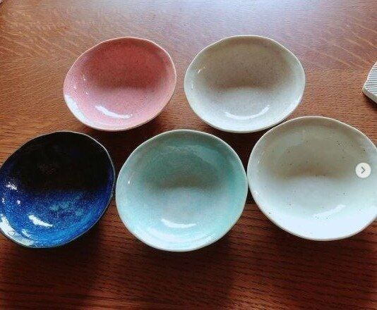 お皿を並べたなかでもパッと目につくのが、お花のデザインがかわいらしい青とピンクカラーの小鉢。大人はもちろん、子どもも喜びそうなかわいらしいデザインが特徴です。食卓に彩りがでて一気に華やかさが増しそうですね。料理はもちろん、スイーツなどを入れるのもぴったり。ひとつ持っておくと幅広く使えそうです。