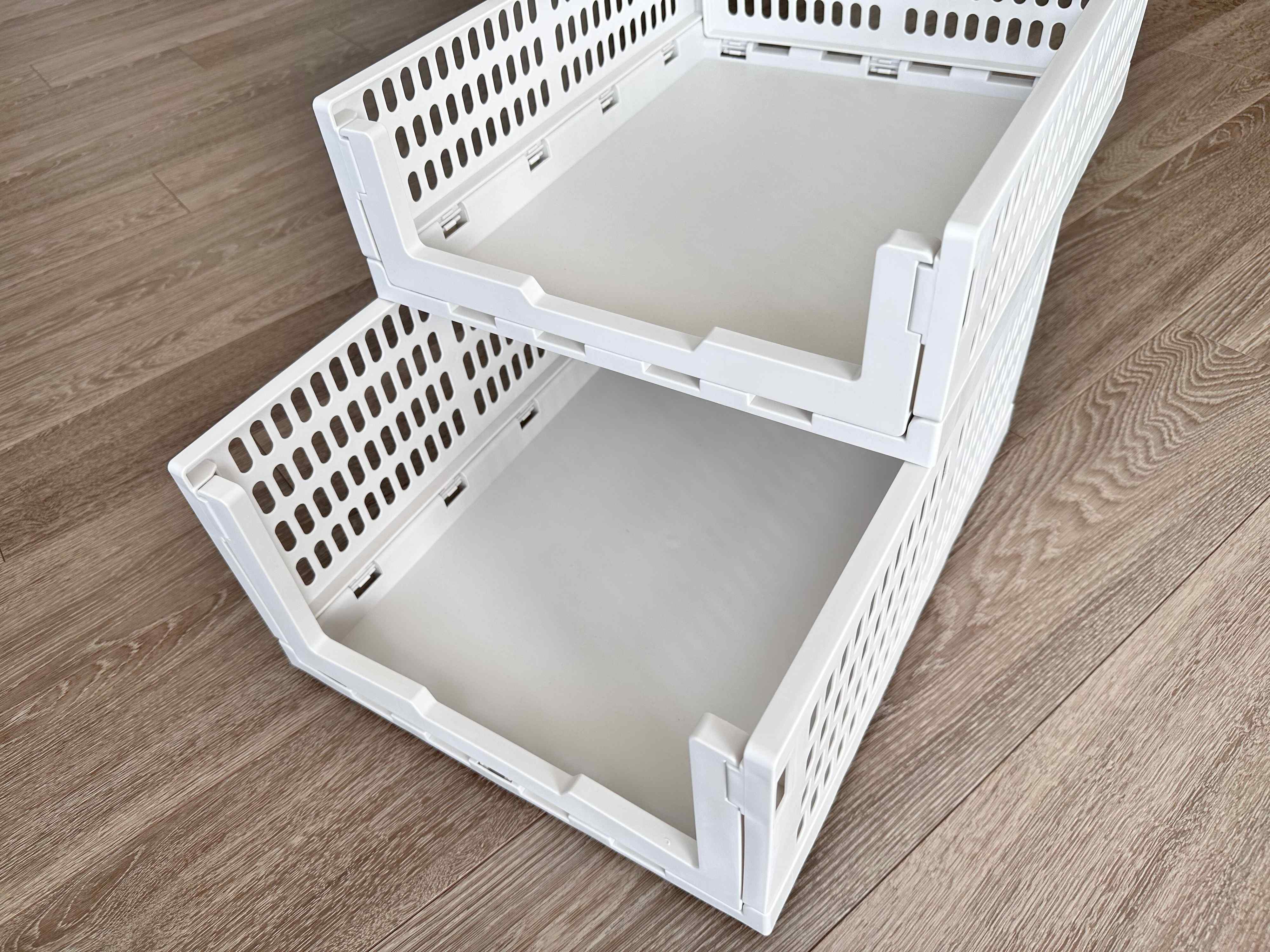 どちらもスタッキングすることが可能で、引き出して使うことができます。そのため、奥に収納した物が取り出しやすいです。