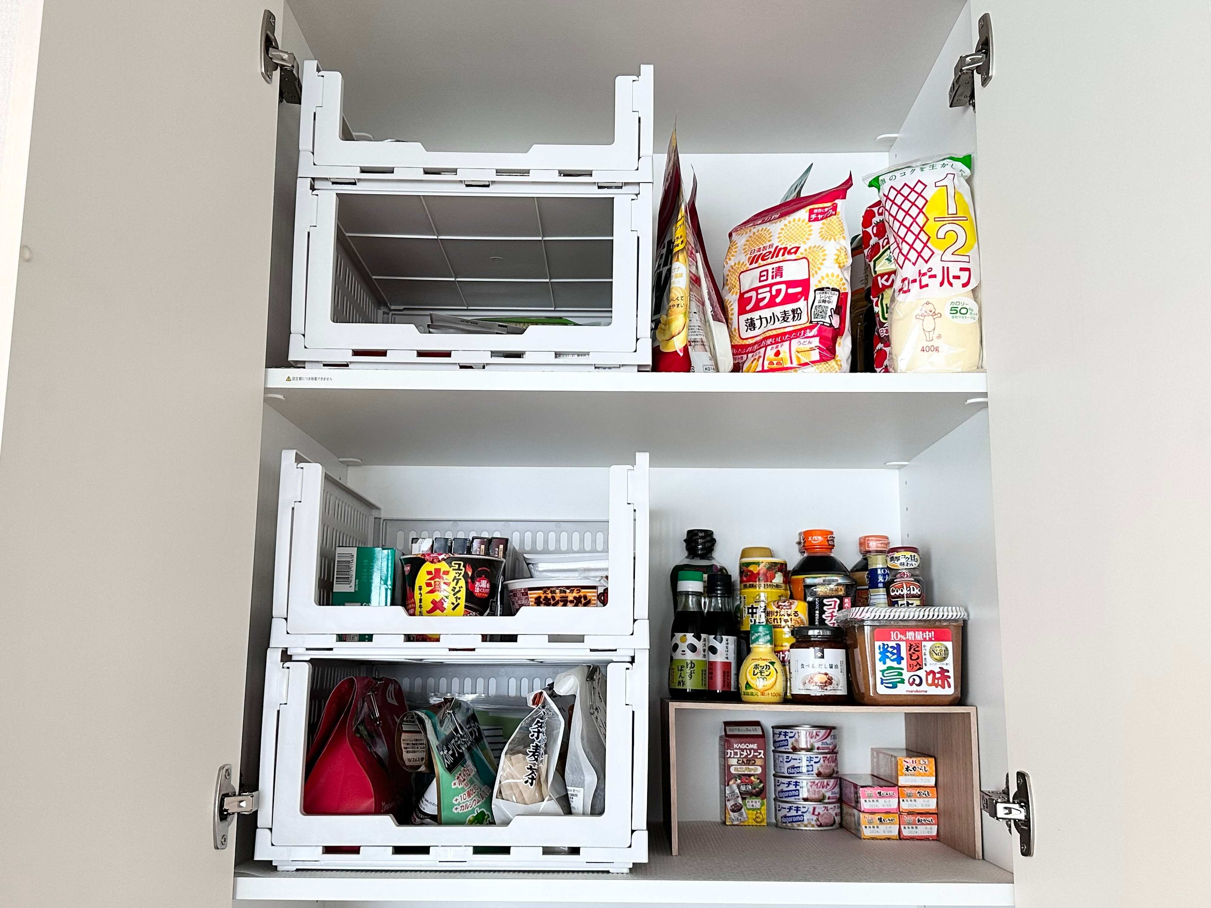 ごちゃつきがちなパントリーも収納ケースを使うことで、すっきりと収納ができ、取り出しやすくなりました。すごく人気商品ですので、お店で見つけたらぜひチェックしてみてくださいね。