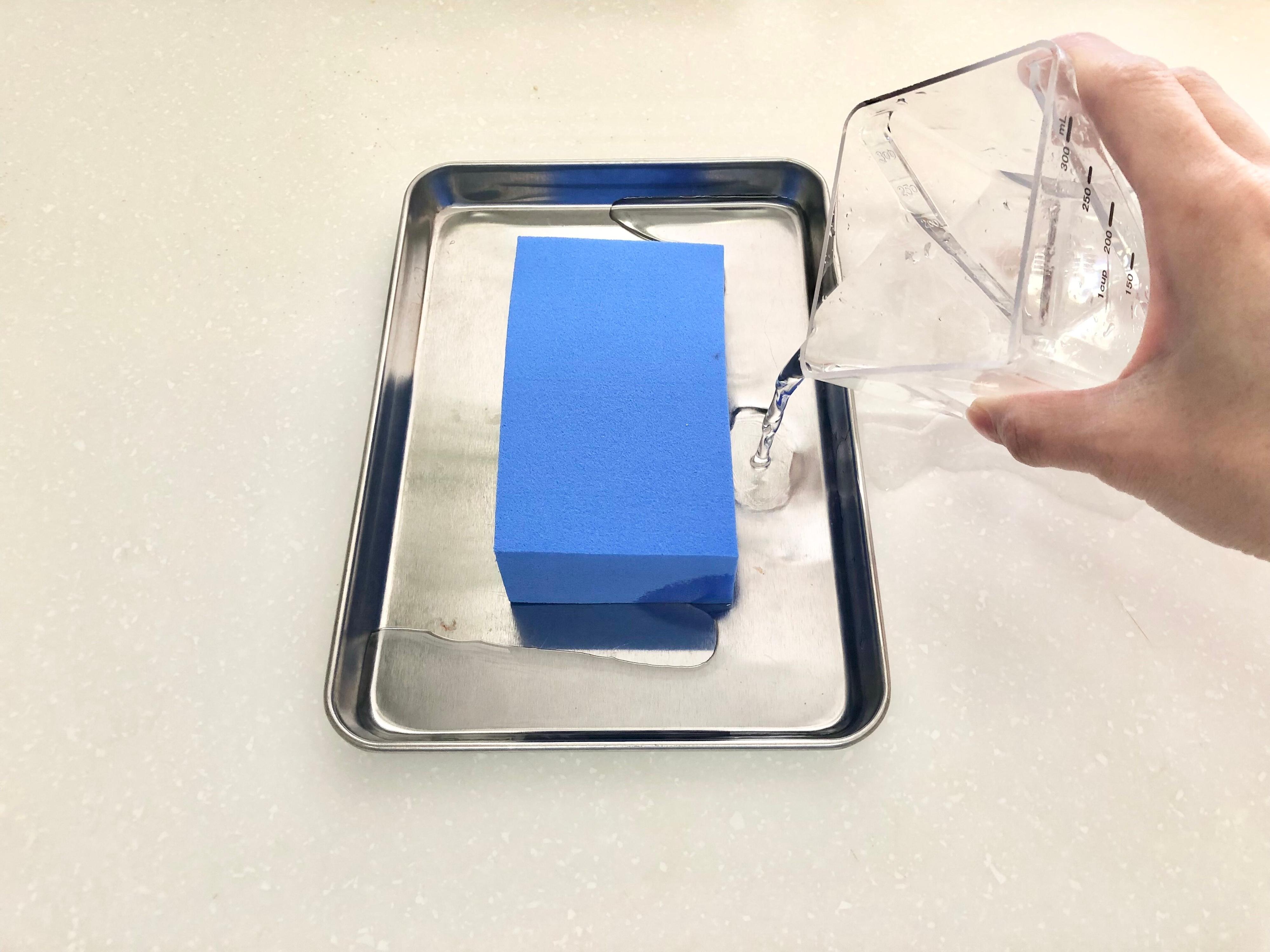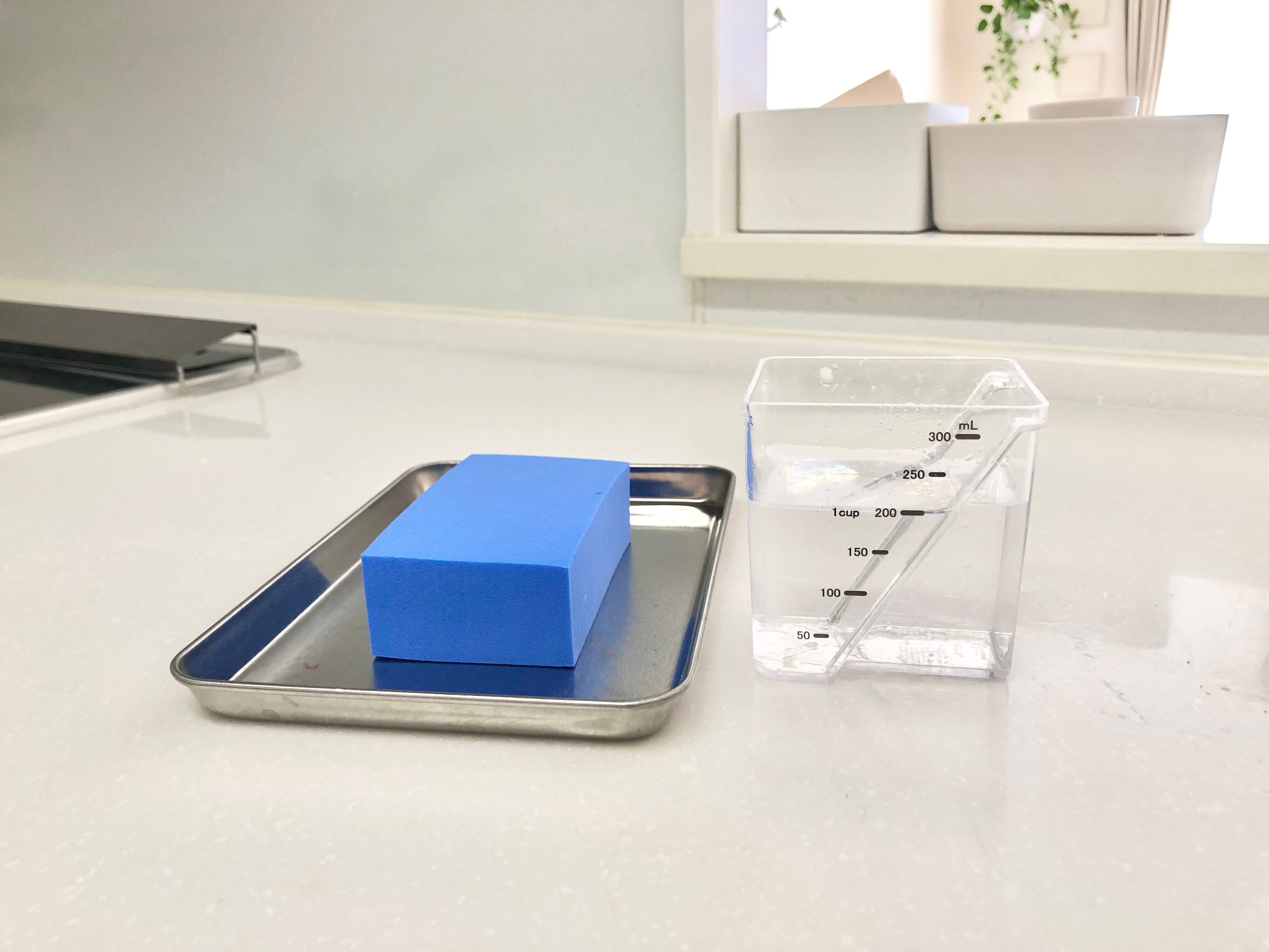 本当に200mlも水分を吸い取ってくれるの?と半信半疑でしたが、実際に約200mlの水をスポンジにかけてみると…