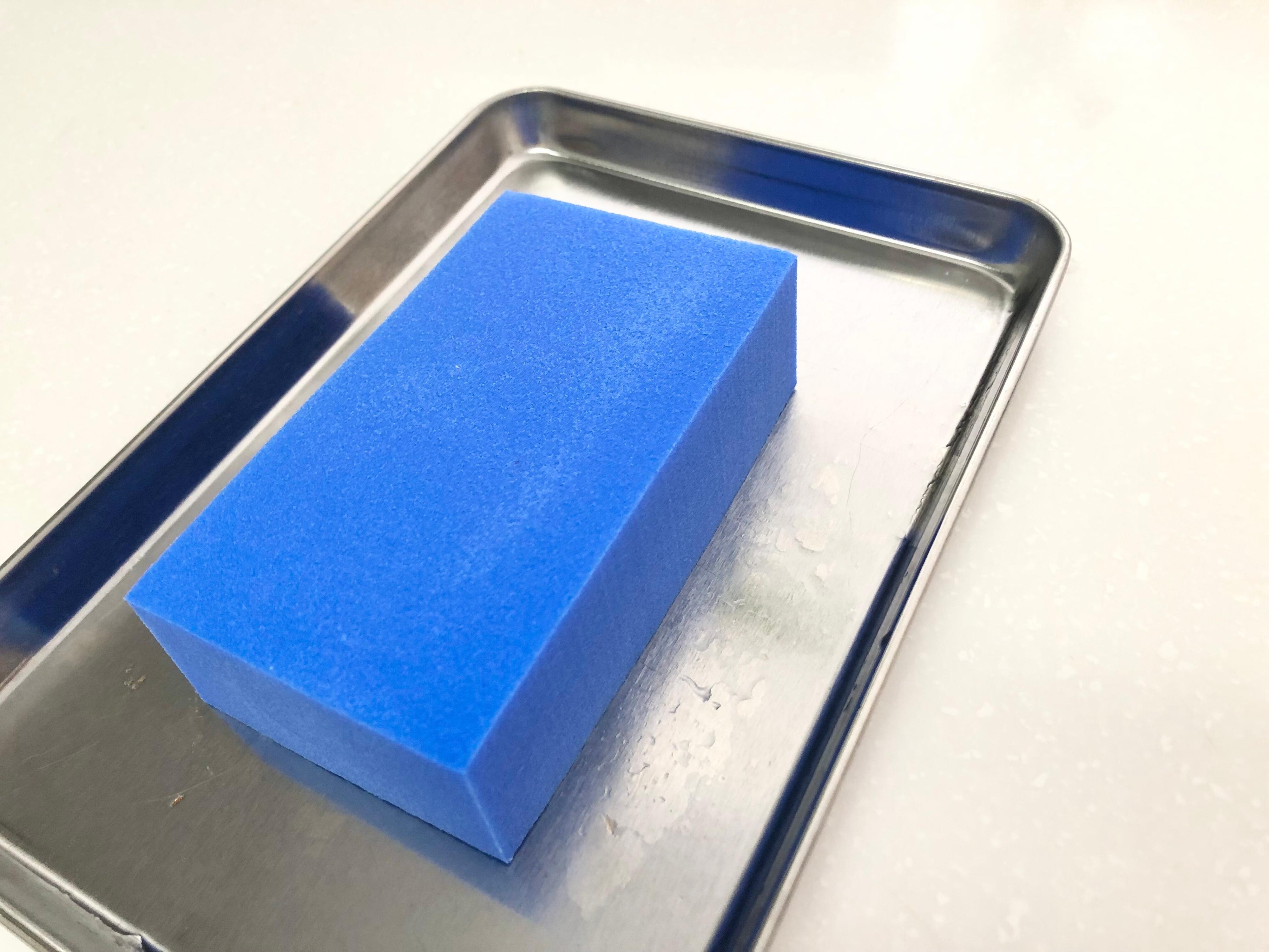 触った感じは食器を洗うごく一般的なスポンジに比べると弾力があり、質感もツルッとした感じです。