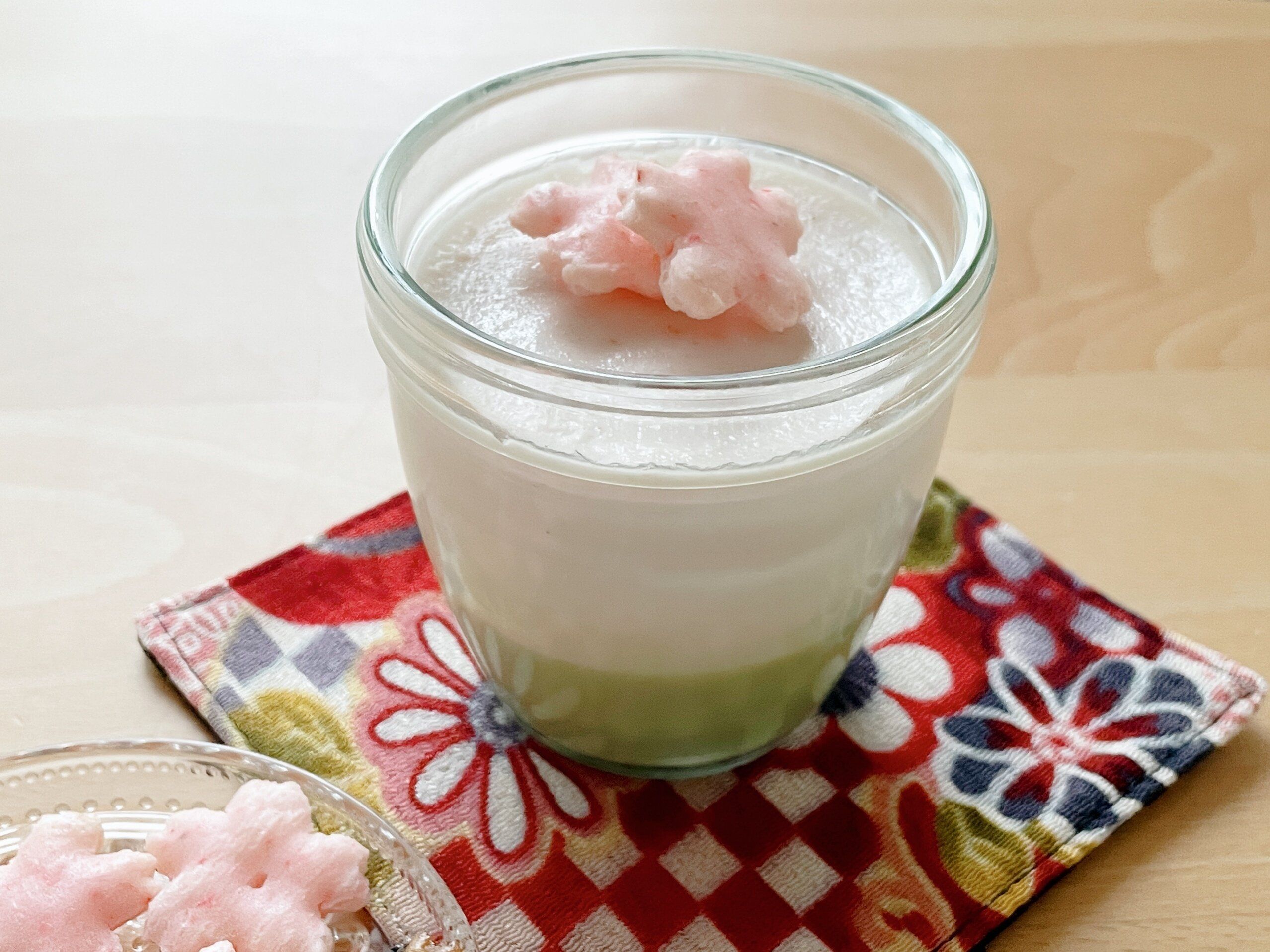 最初に試した製菓パウダーは「抹茶パウダー」と「イチゴパウダー」!春の3色ゼリーが作りたいとなり、抹茶ラテやイチゴラテを混ぜて色だししようと思っていたのですが、イチゴラテが売り切れていて困った状況に。本物のイチゴは高いので手が出ない、他に何かで代用できないかと調べたら、なんとセリアでお手軽なパウダーが買えると知って大喜び!