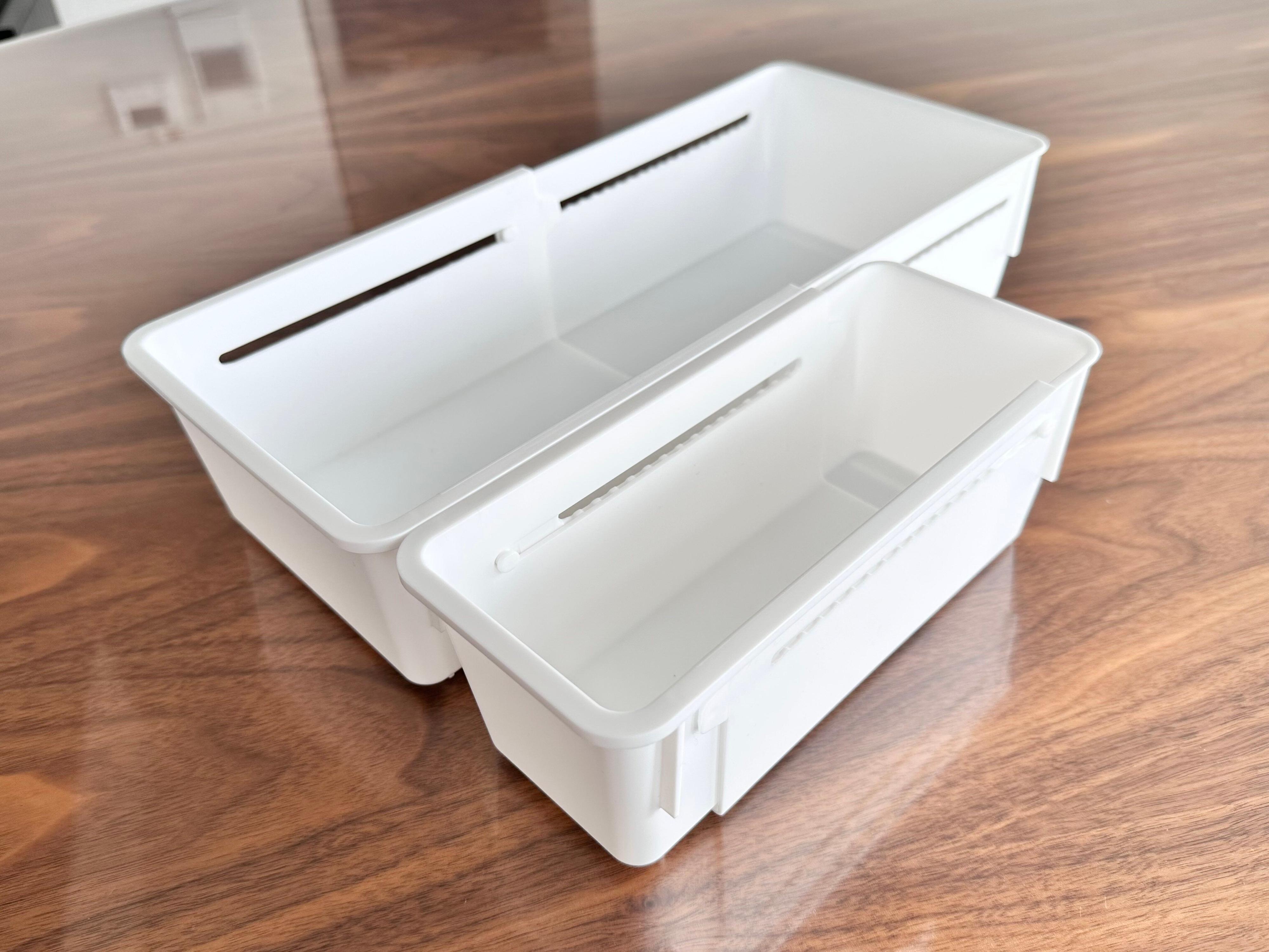 100円ショップセリアの『伸縮収納トレー』です。MサイズとLサイズの2サイズ展開です。