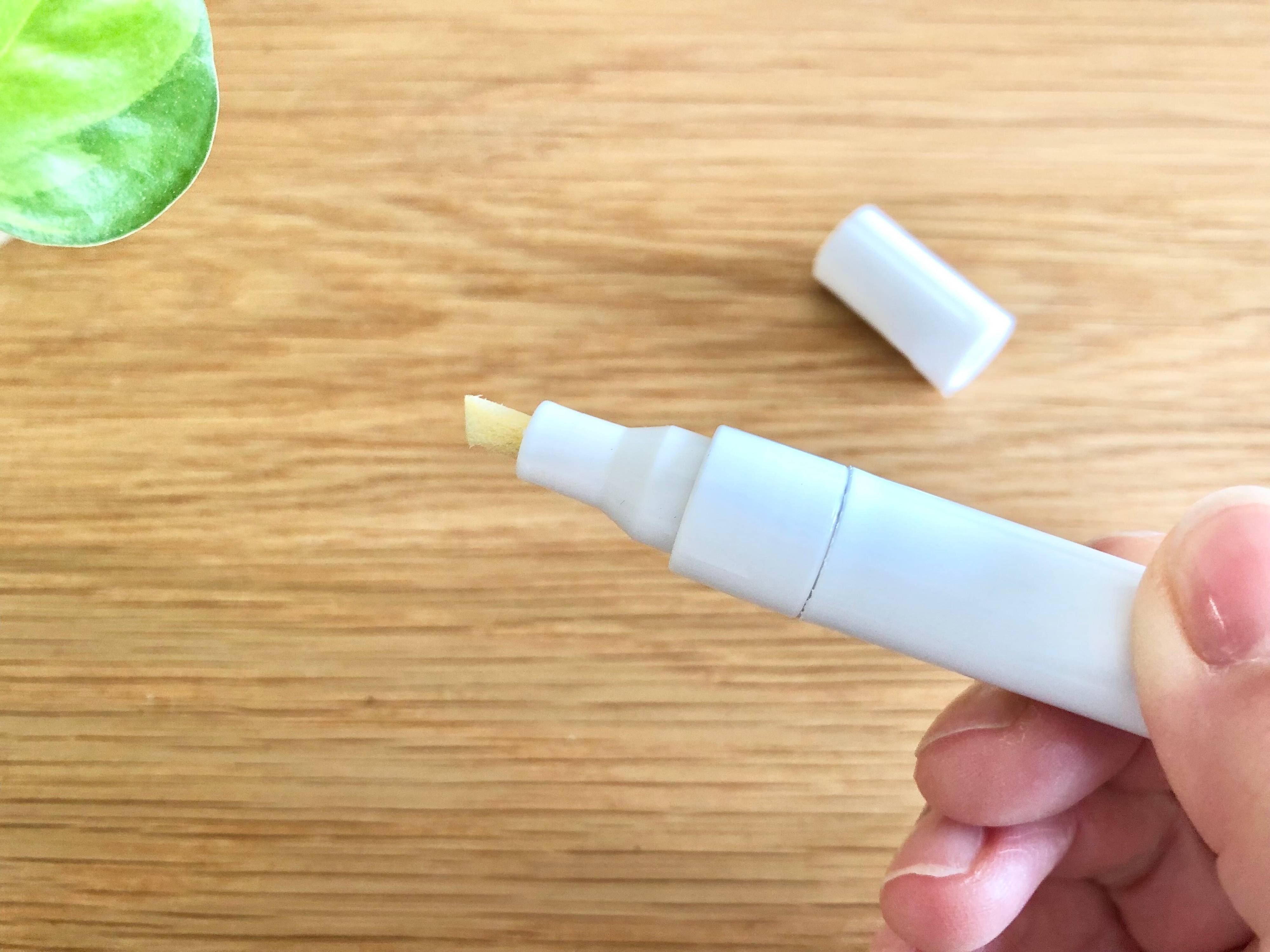 ペン先はマジックペンのように太くなっているので、サッと一本線を引くだけてOKです。