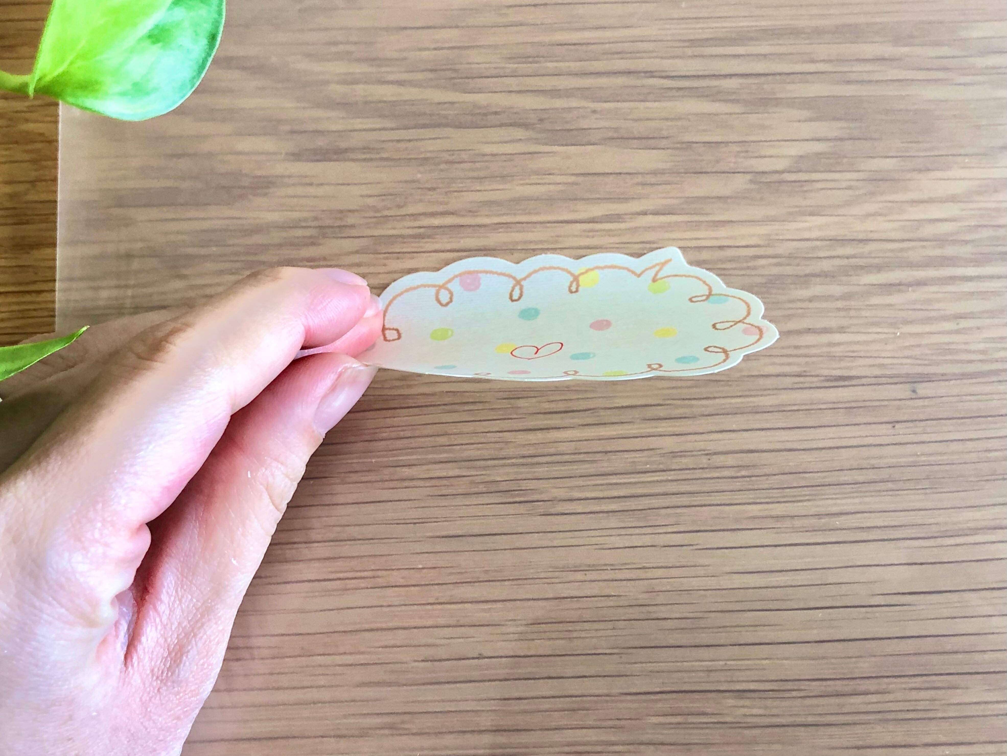 のりが乾いたら、お好きな場所にペタっと貼れる付箋の完成です!