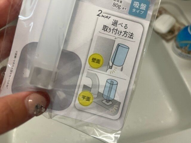吸盤で貼り付けるタイプですが、平面でも壁面でもどちらでもOKの2WAY。