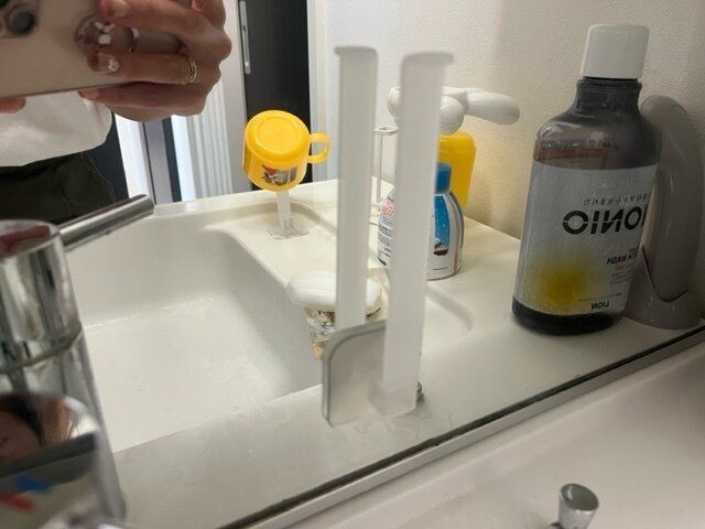洗面台に必ずあるコップ。我が家は家族が多いので2つ置いてるのですが、いつも置き場所に困っていました。