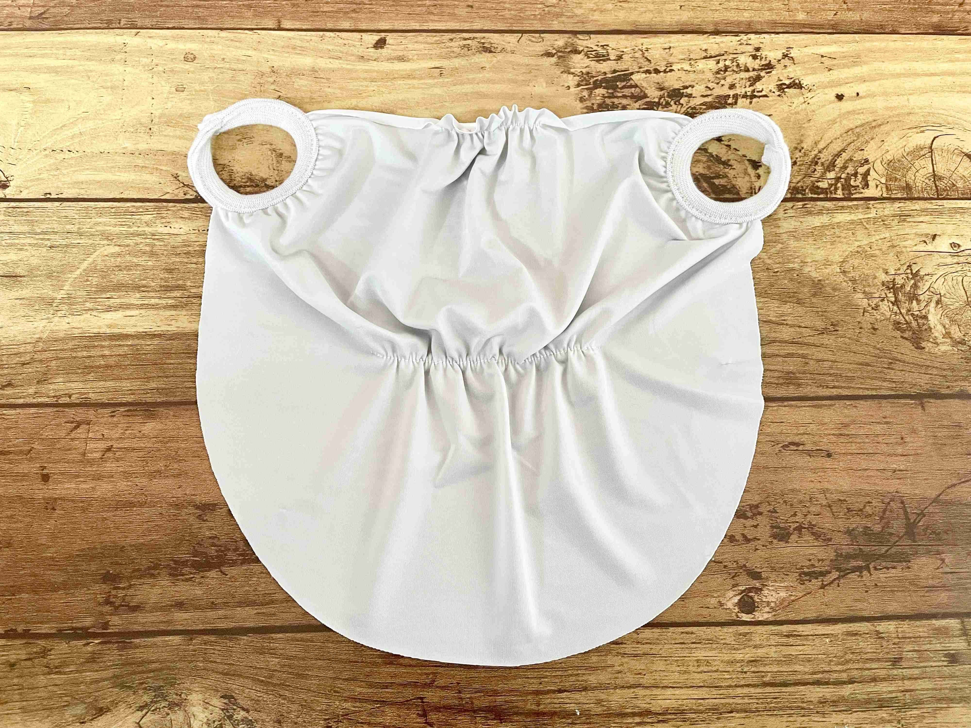 耳に長い布をかけるだけでは隙間から日差しが入らないか心配になりますが、鼻とアゴの部分にはシャーリングが入っているから顔にピッタリフィット。