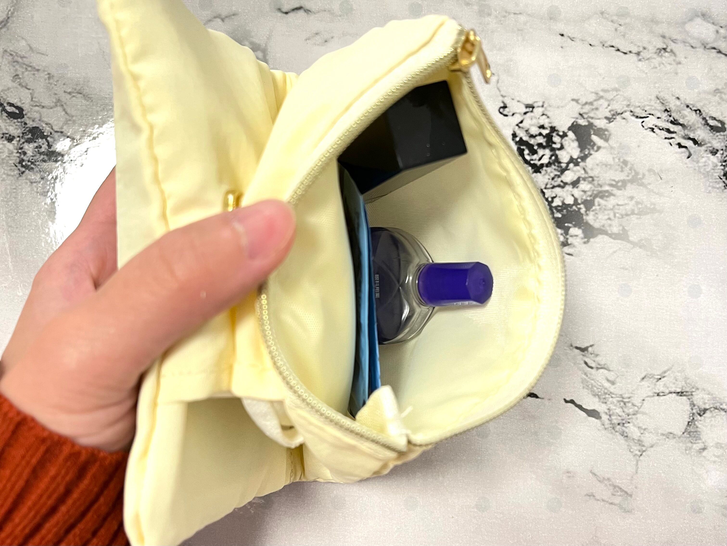ファスナー付きで、ガバっと口が開くので中も見やすく取りやすいのがとてもいいなと感じました。