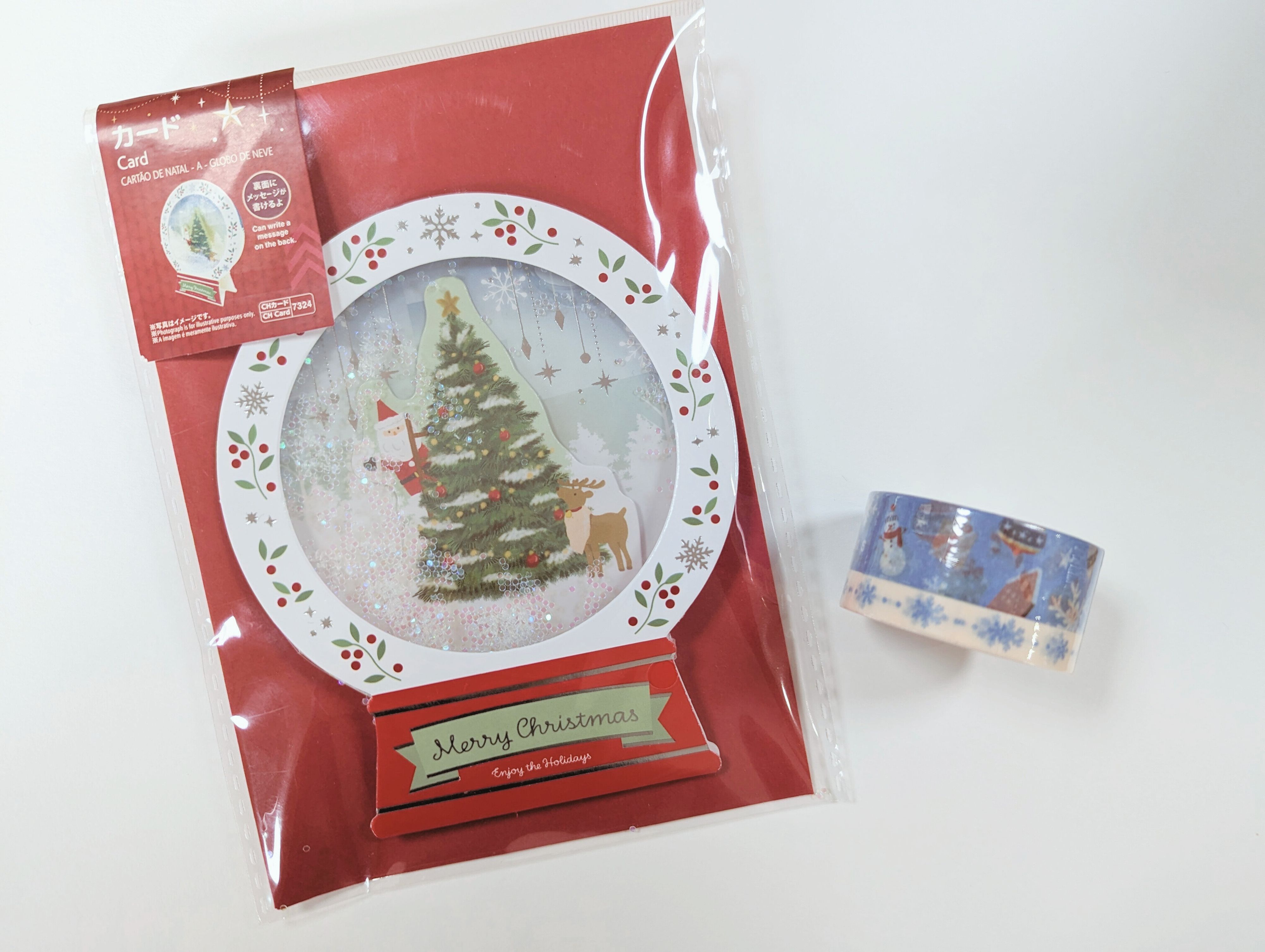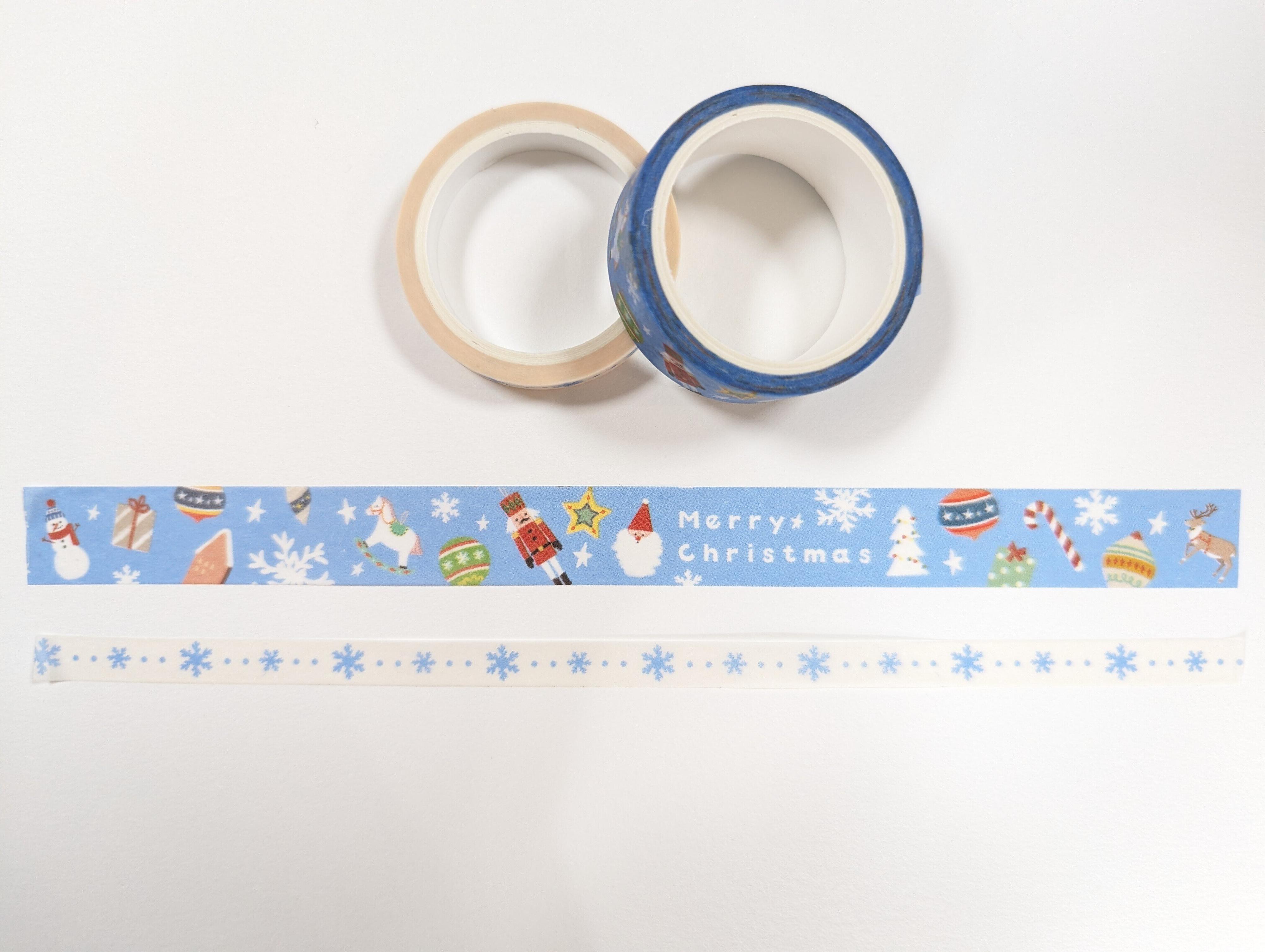 ほかにも、カードの封やギフトラッピングに使えそうな、クリスマスデザインのマステが2つセットで110円。1.5cm幅と0.7cm幅の使いやすい2サイズです。