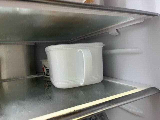 冷蔵庫に入れてみました。奥に入れても取っ手がついているので取り出しやすい!
