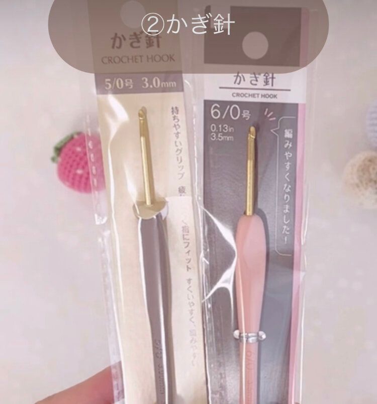 次は、ダイソーの「かぎ針」(110円)。初心者の方は、6-8号を選ぶのがおすすめ。