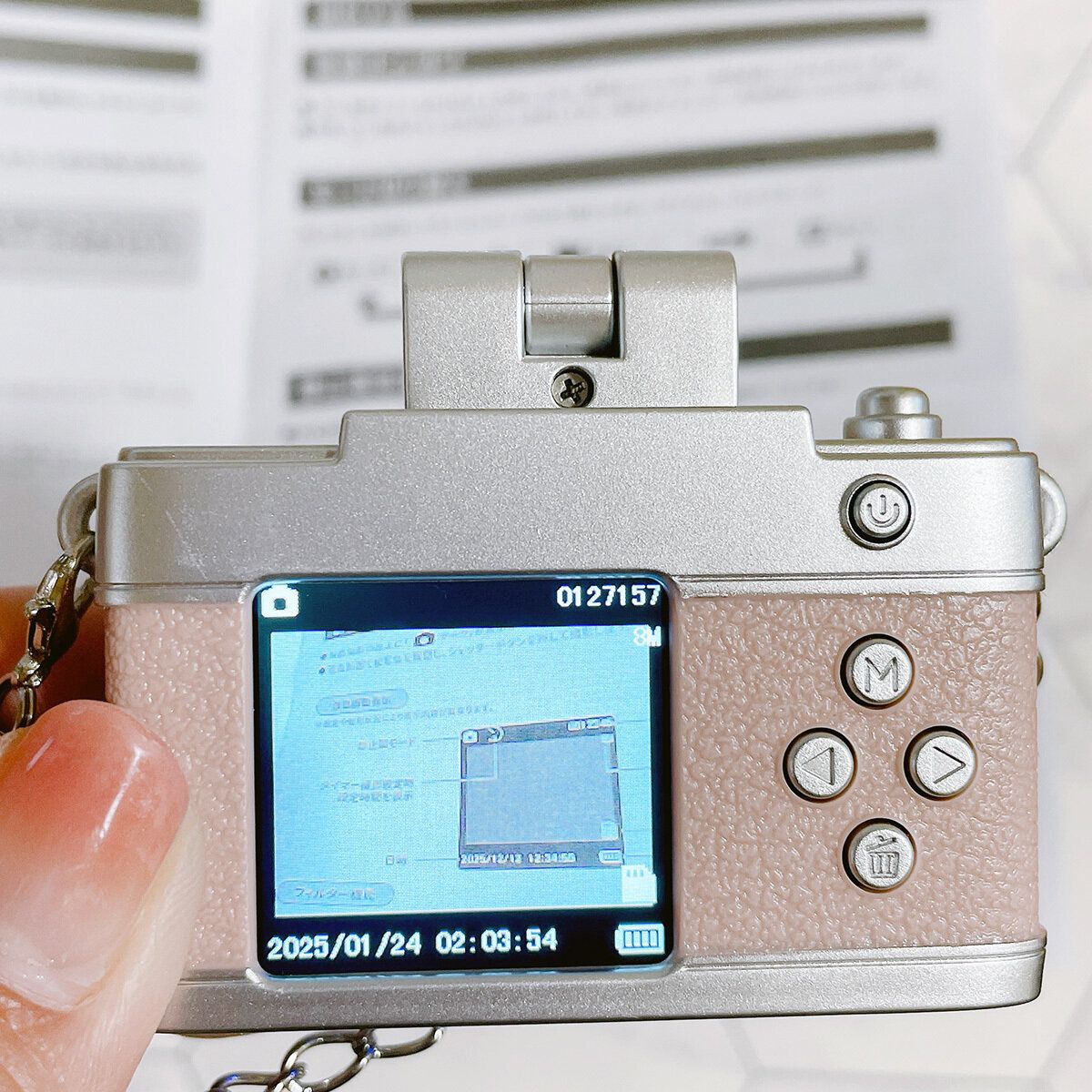 私はもともとミニチュア雑貨が大好きで、小さなものを見るとつい集めたくなってしまいます。このカメラも、発売当初から気になっていたアイテム。人気すぎてすぐに完売してしまい、再入荷のタイミングで手に入れることができました。