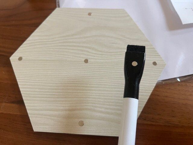 木目調のボードに字を書くことが出来ます。木目調というだけでもおしゃれですがこの六角形の形もおしゃれ。
