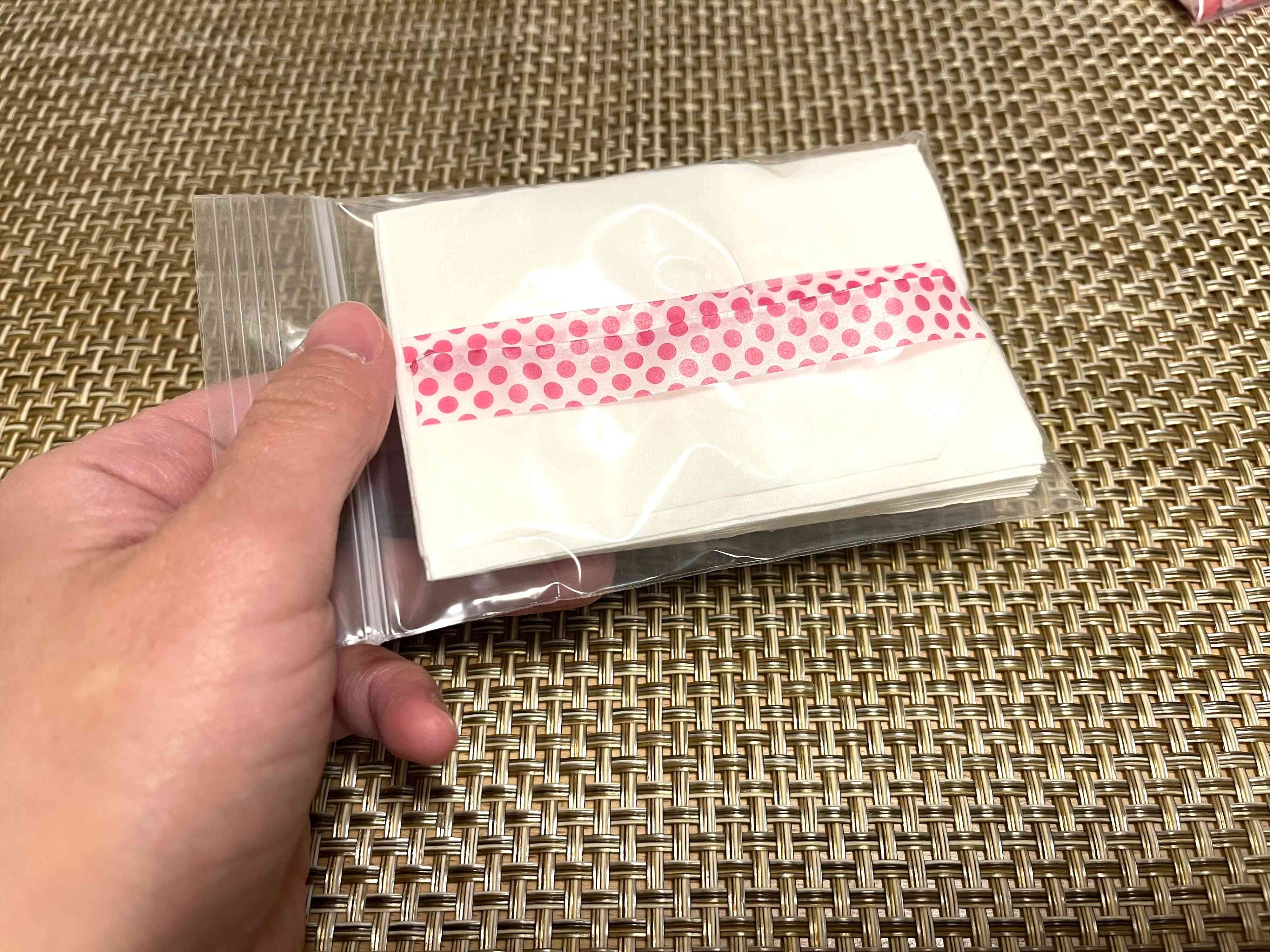 こちらのチャック袋にひと工夫して、ティッシュのむき出しを予防していきます。