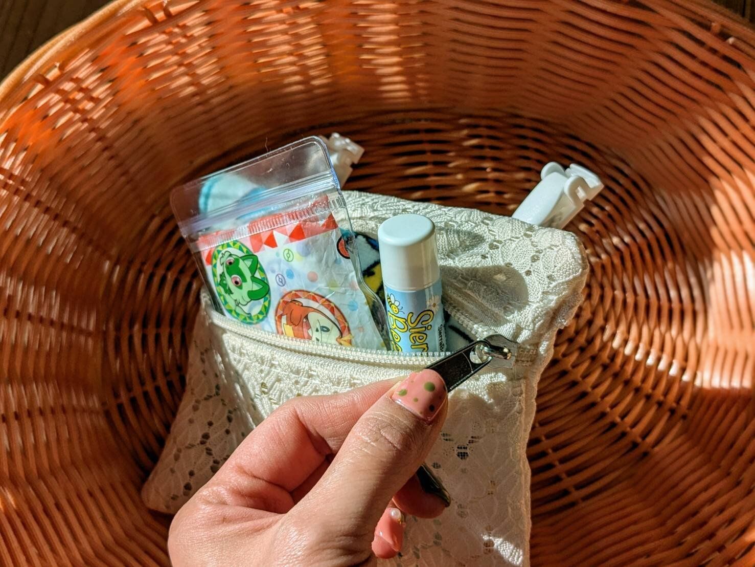 大きめサイズなので、「ハンカチ」や「ポケットティッシュ」に加え、乾燥する冬場は「リップクリーム」を入れて持ち運ぶこともできますよ!