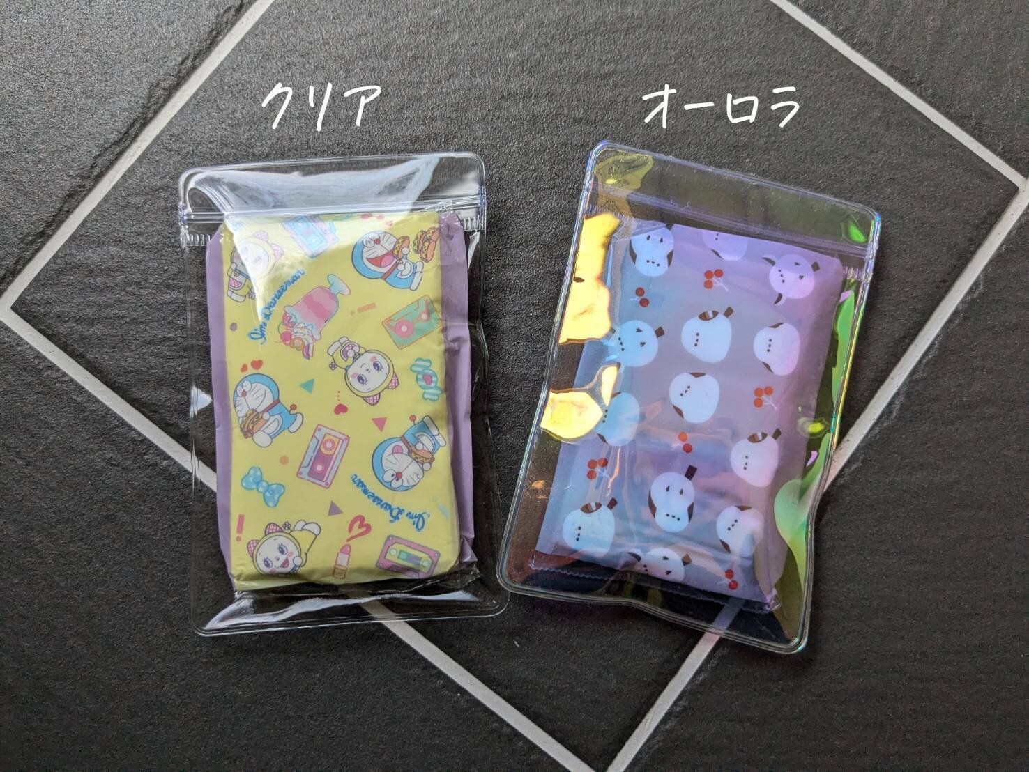 わが家ではクリアにカッターで切り込みを入れて、子どものポケットティッシュケースにしていますが、オーロラよりも柔らかいぶん、取り出しがスムーズです。入れるモノに合わせて、どちらのカラーにするか選んでみるのもオススメですよ。