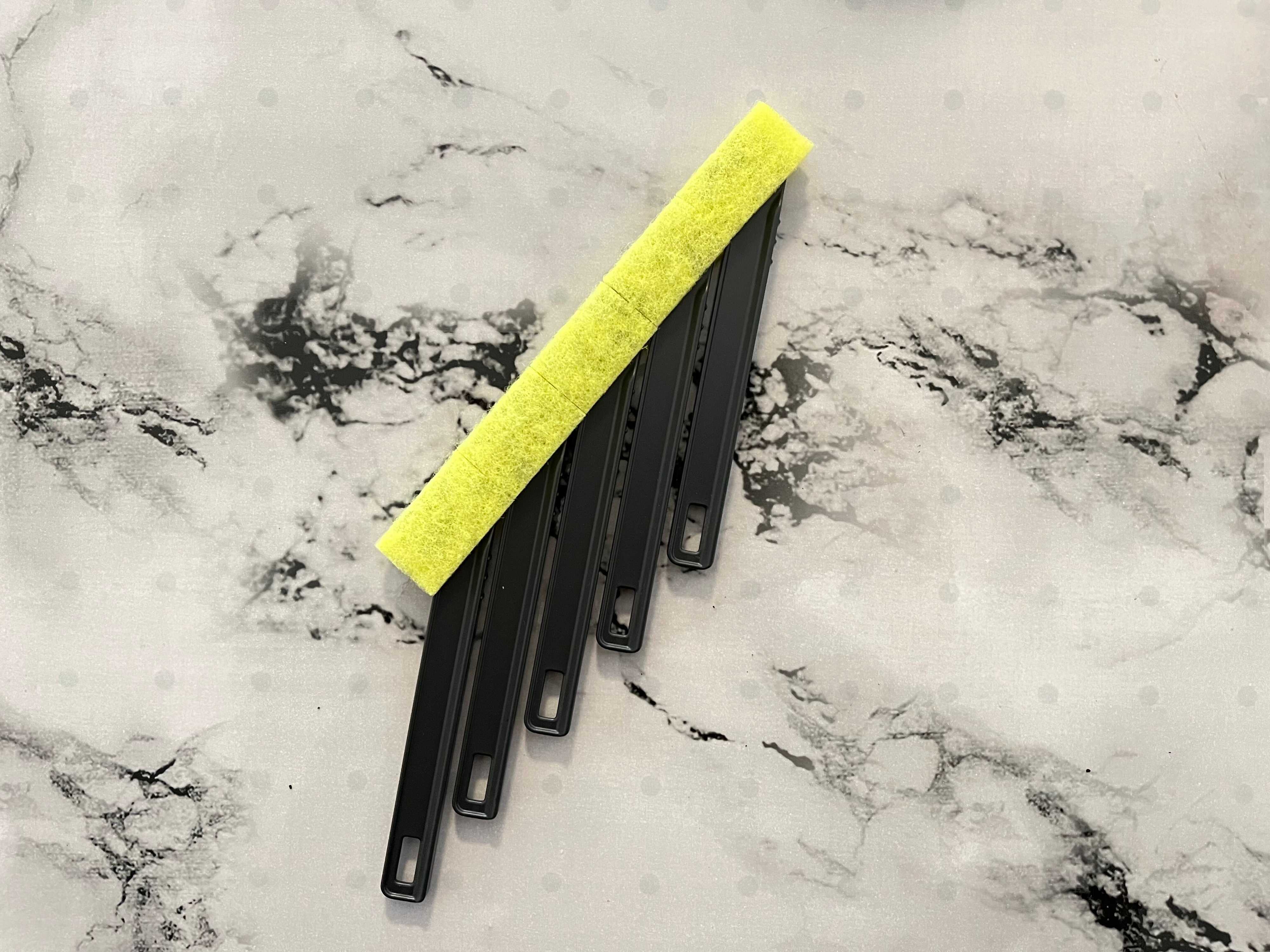 中身は、5本分つながっていて、使用する時に1本ずつ切り離していくタイプ。スポンジ部分はすこし硬めですが、力を入れ過ぎなければ傷をつけることはなさそうです。
