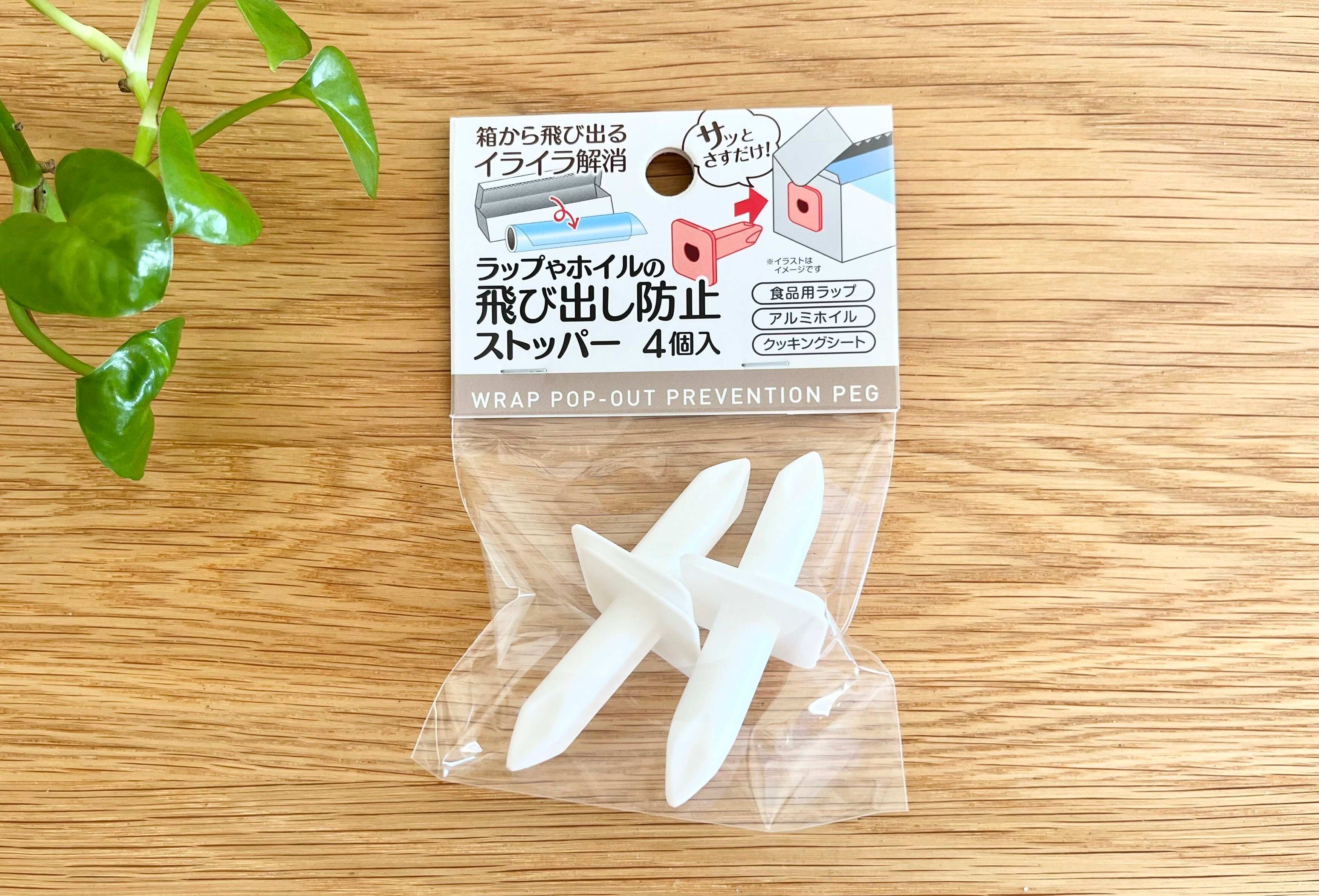 そんな時に役立つのが、セリアの「ラップ・ホイルの飛び出し防止ストッパー」!1袋に4個入りで110円(税込)で販売されています。
