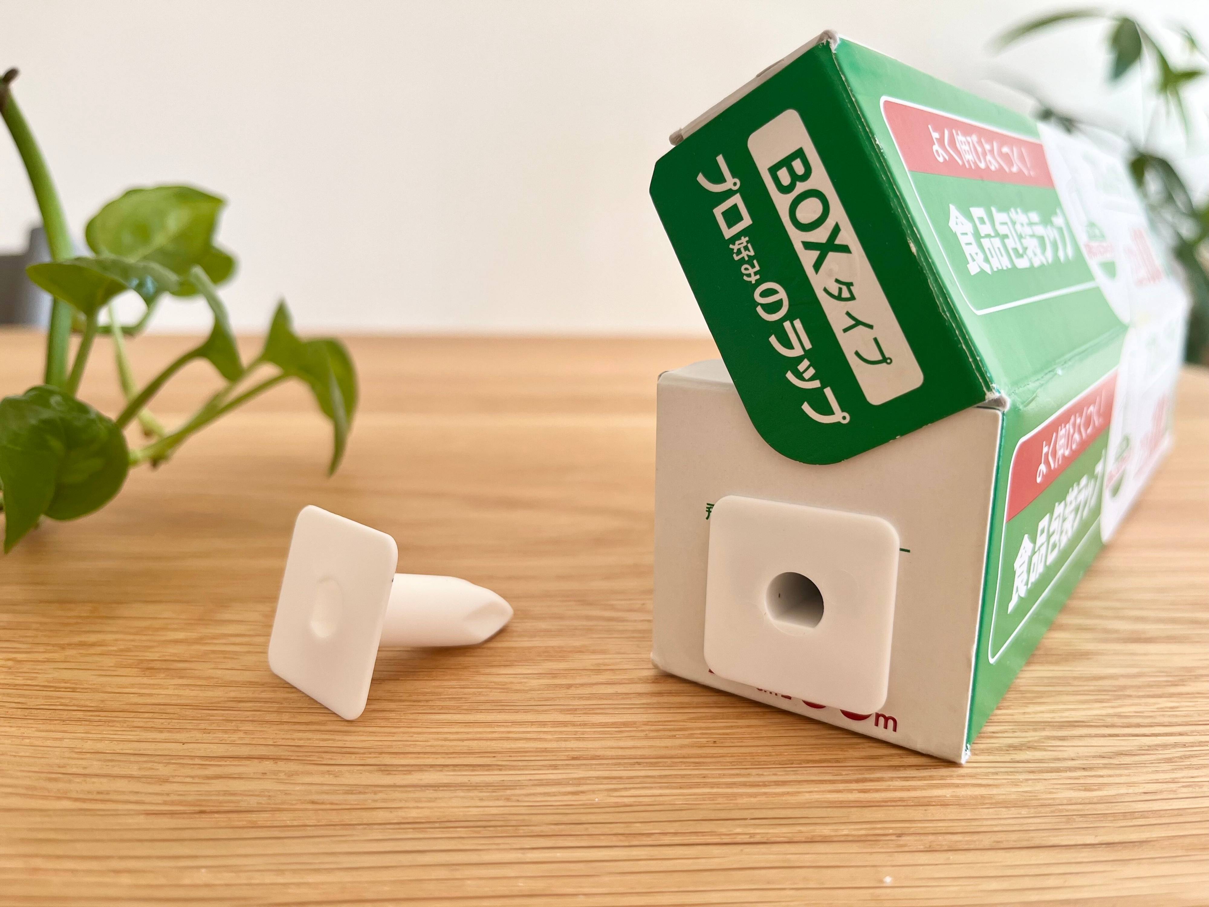 「ラップ・ホイルの飛び出し防止ストッパー」を差し込むことで左右から芯をしっかり固定することができ、ラップやアルミホイルの芯が飛び出しにくくなります。残り少なくなってくると、より芯が箱から飛び出しがちですが、ノンストレスで最後まで使えるよになりますよ!