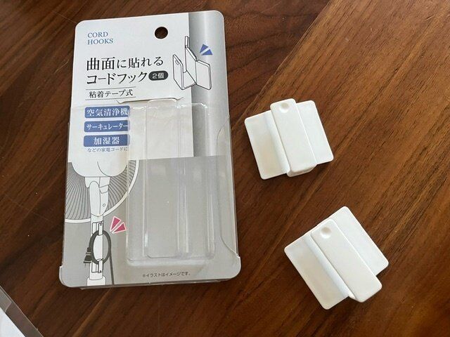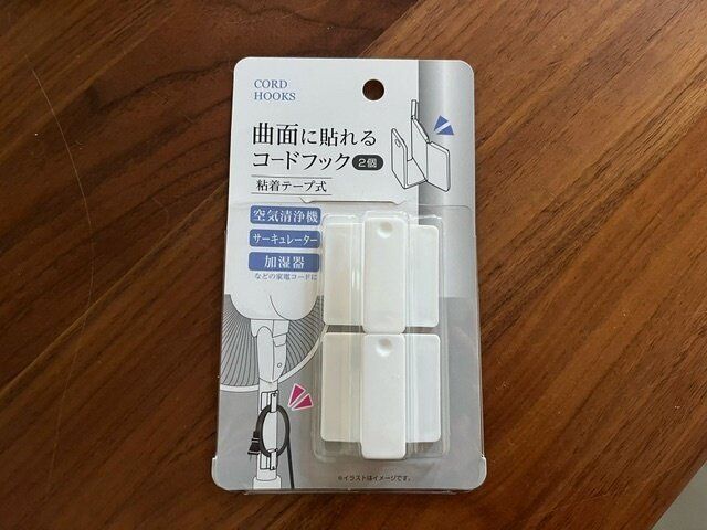 こちらです。「曲面に貼れるコードフック 2個」税込み110円