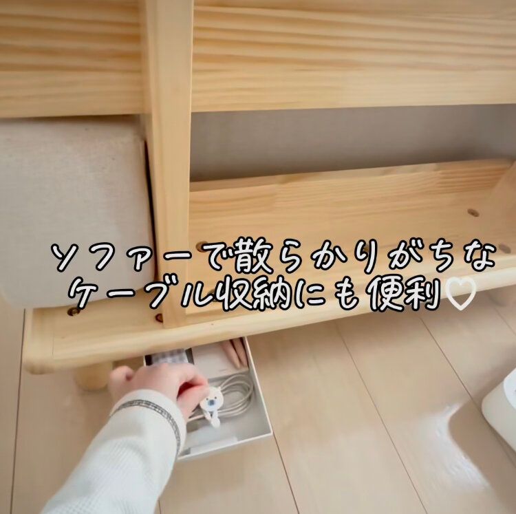 つける場所はなんと、ソファの下!隙間が空いているソファならデッドスペースですよね。ここに引き出しをつけてケーブルなどを入れておけば、引き出しをつけていることもわからず、見た目もすっきり!すでに使用しているかたも、デッドスペースを見つけて新たな収納場所を作ってみませんか?
