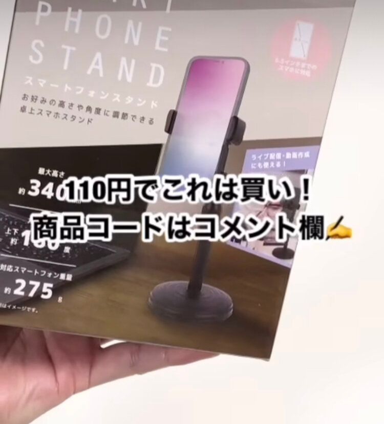 110円のクオリティとは思えない、ダイソーの「スマートフォンスタンド」。前回も即完売したという人気の商品のようなので、気になったかたはすぐに店頭でチェックしてみたほうがいいかもしれません。角度だけでなく、高さも調節できるので撮影やオンライン会議の時にもよさそうですね。