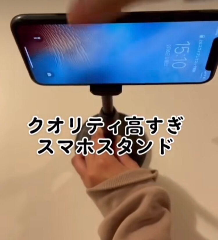 写真のように横向きにすることもできるので、動画を見る時にも問題なし。角度、高さ、向きを変更可能なので、使い道も広がります。まだスマホスタンドを持っていないかたは、ぜひ1つは持っておきたいアイテム。110円なので試しに買ってみるのもいいかもしれません。