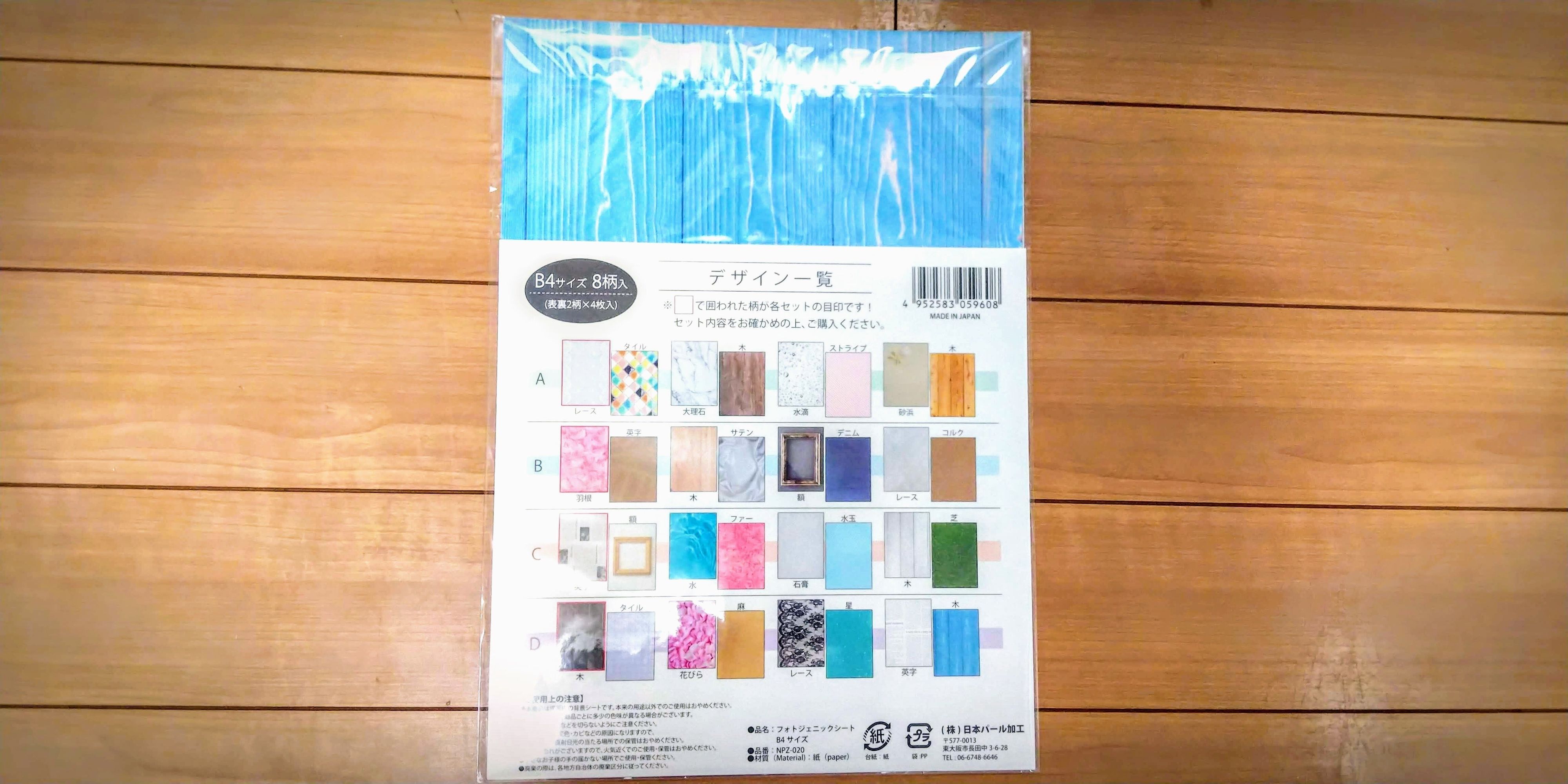 中には4枚×裏表で8柄のシートが入っていて、4種類販売されています。