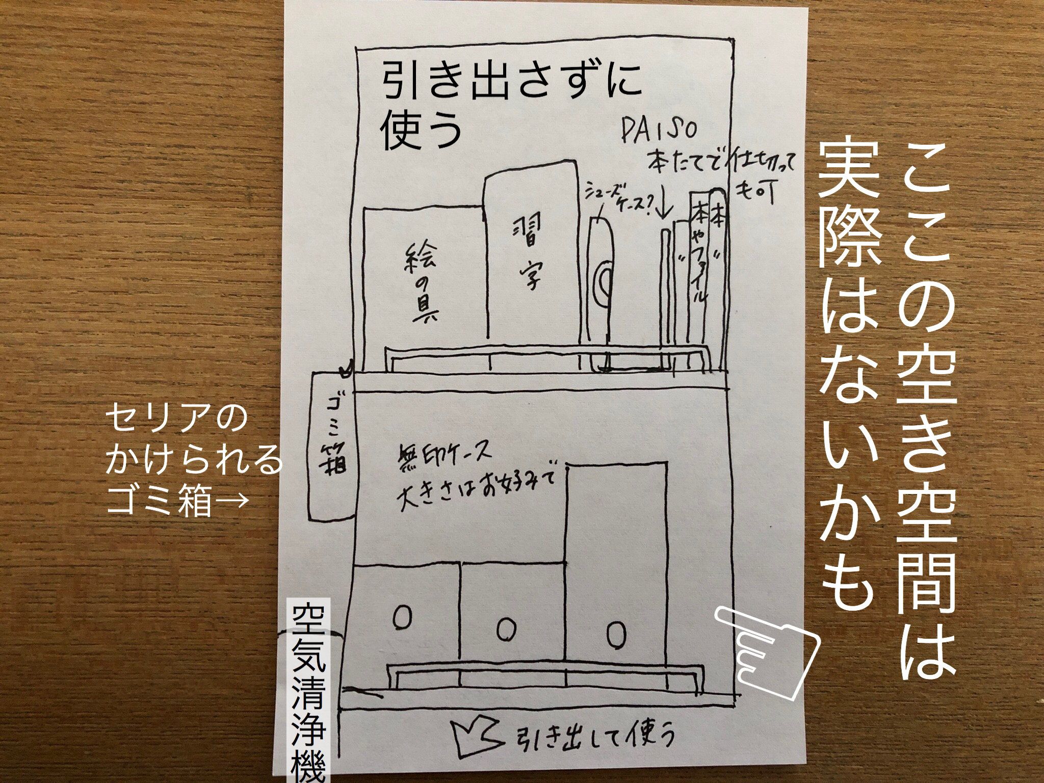 入れたいモノの分類が定まってから、そちらにあわせてちょうどいい大きさの収納グッズを用意されることをおススメします。