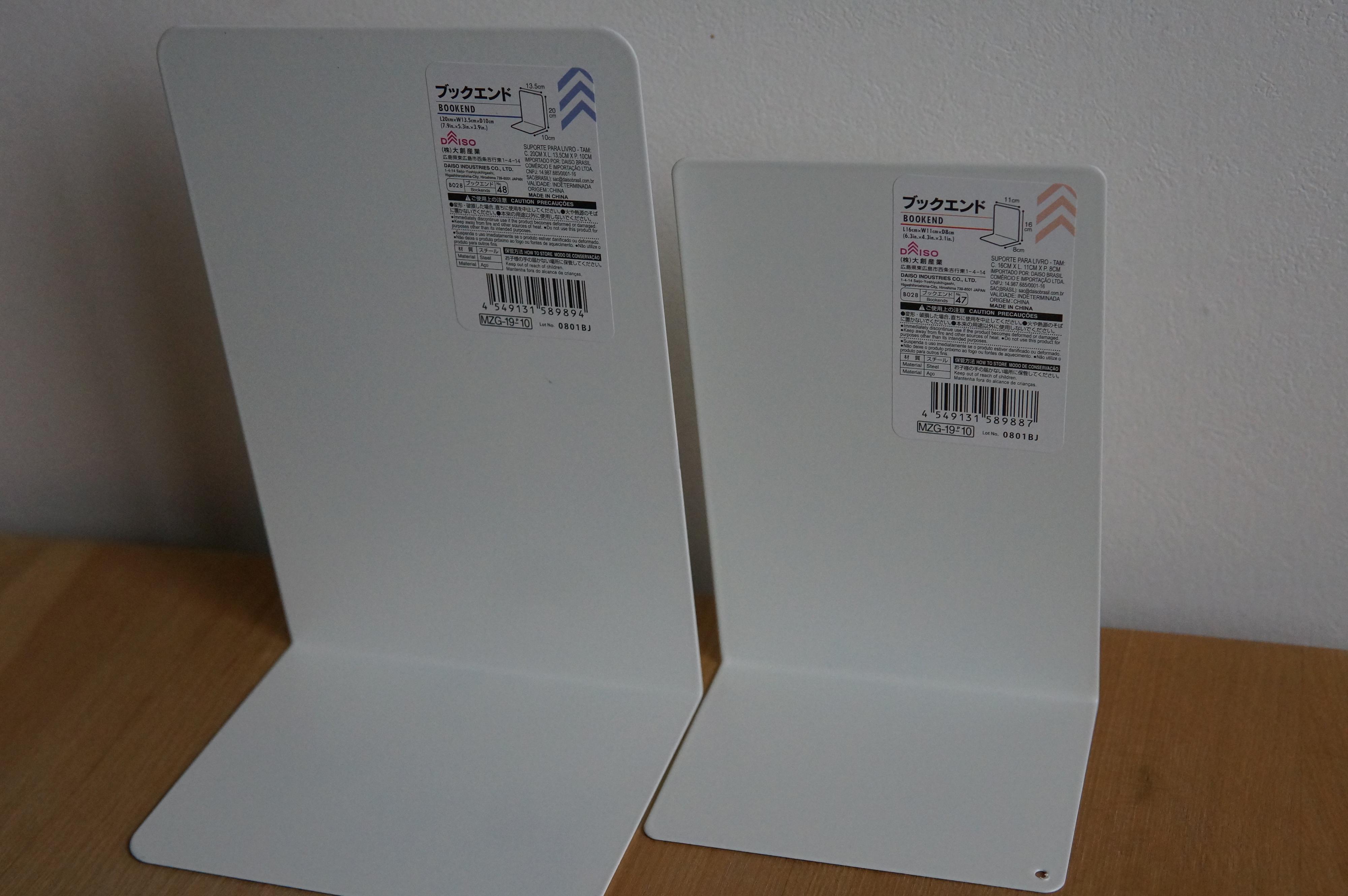 自立するものはそのまま立てて、余ったスペースには本やノート、ファイルなどを立てて収納してみてはいかがでしょうか。何かを取ったら隣のモノが倒れてしまう状態だと使いづらいので本たてを使います。無印良品そっくりと噂のDAISO白いブックエンドが個人的には好みです。