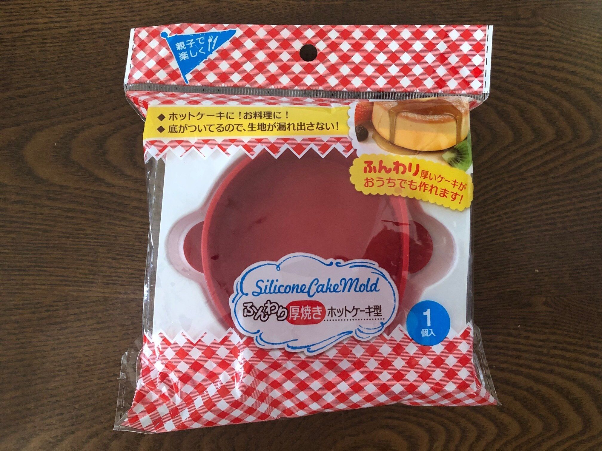 まずは型を用意します。セリアのふんわり厚焼きホットケーキ型。価格はひとつ110円です。丸形と猫耳型がありますよ。シリコンで出来ているので扱いやすく、何度でも使えます。