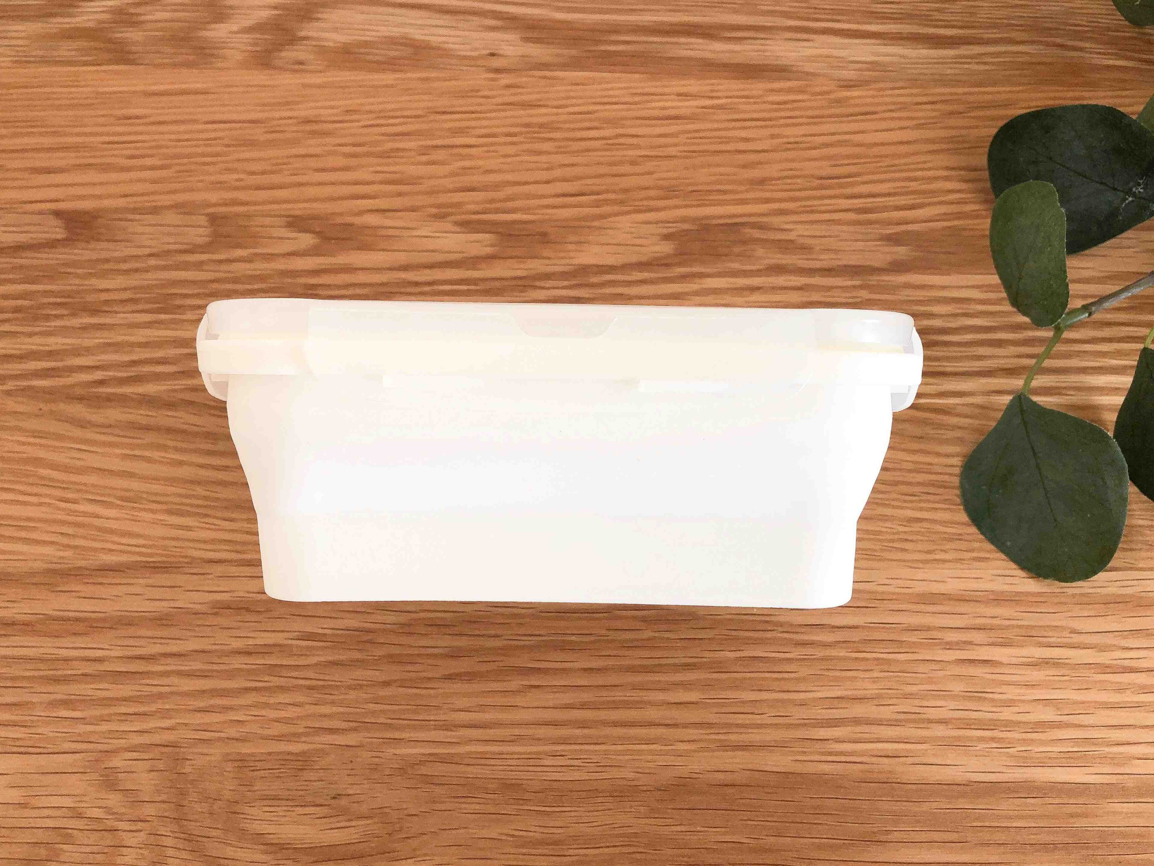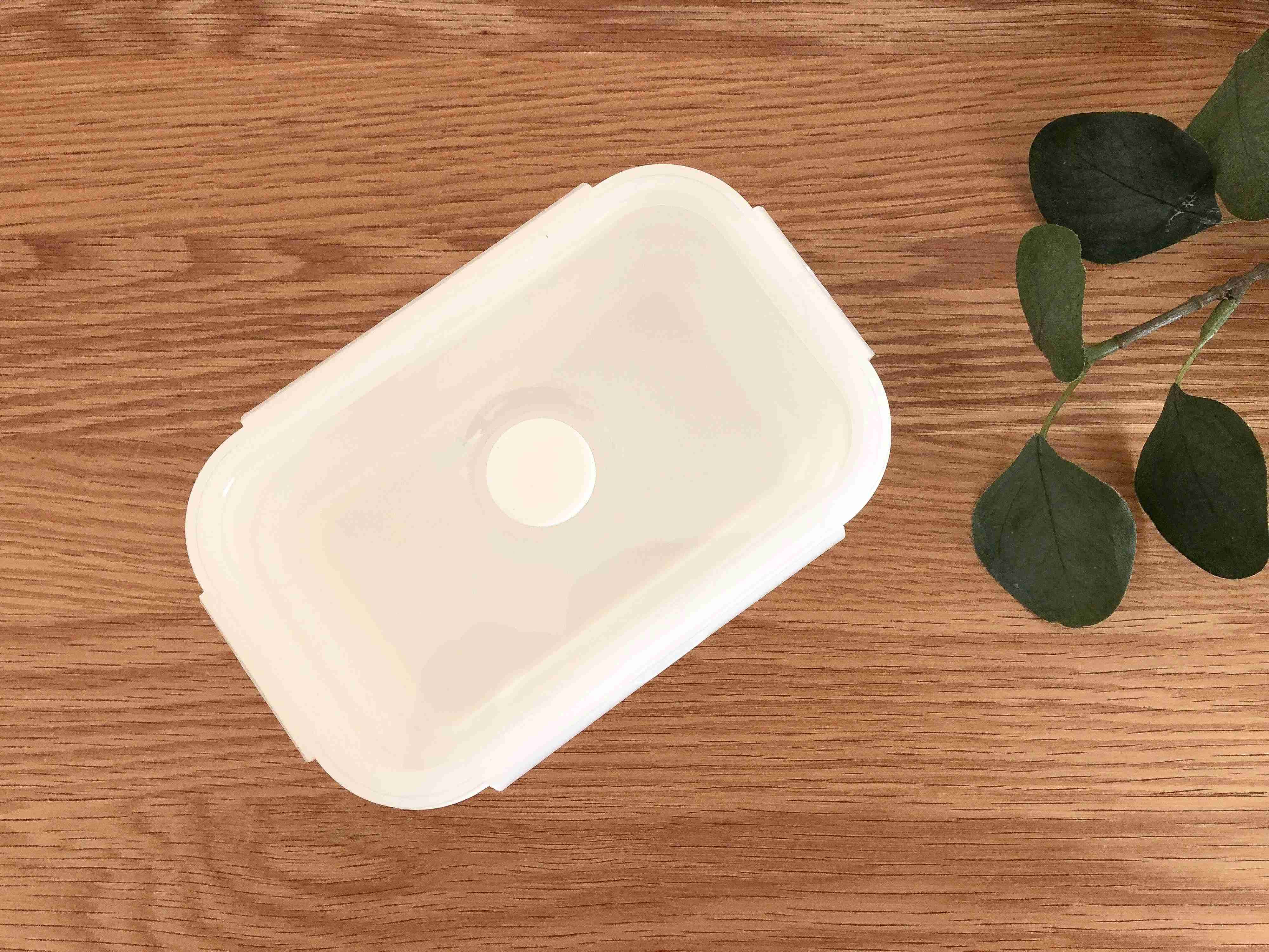 真っ白でシンプルなデザインのシリコーン保存容器。