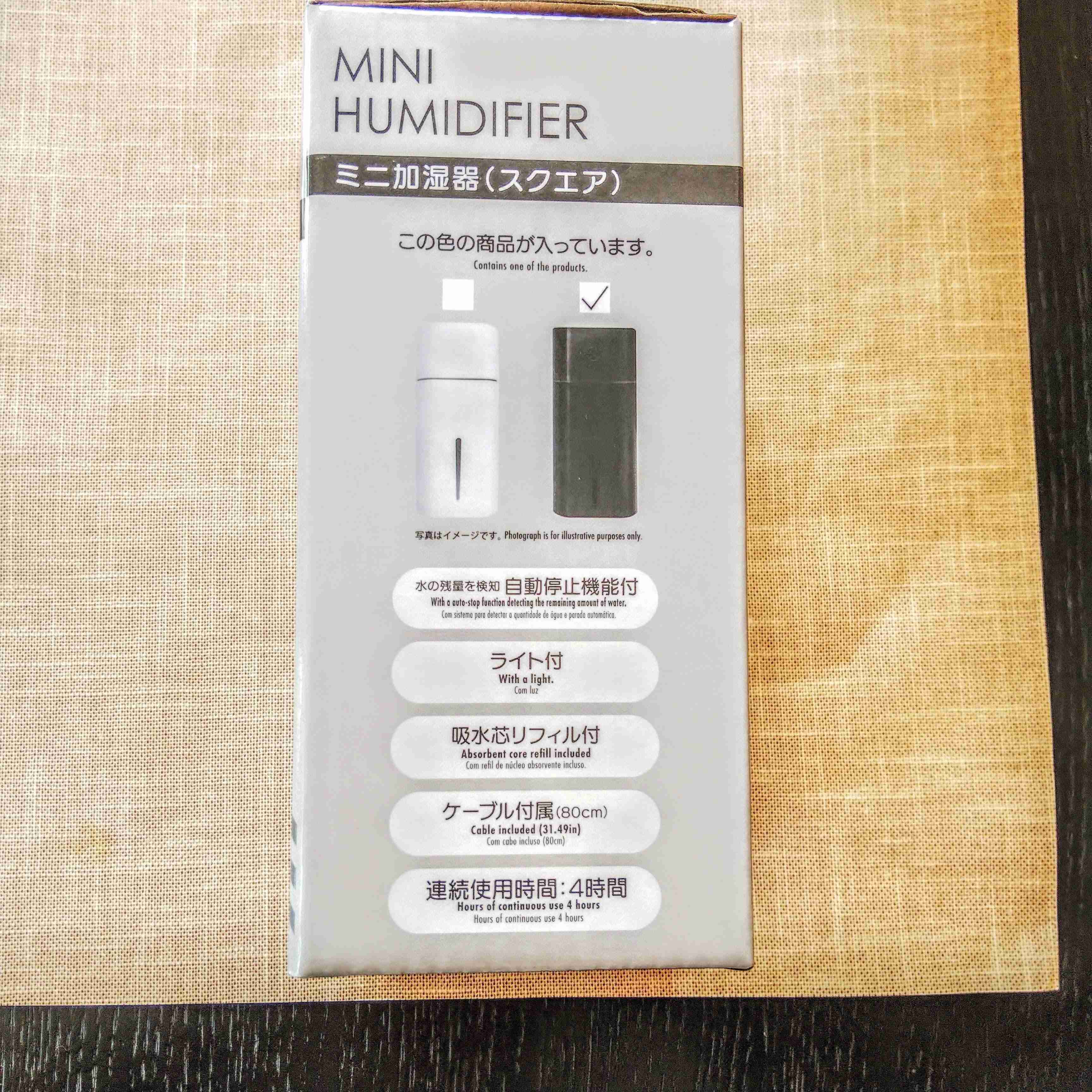 こちらがワンコインで購入できるミニ加湿器です。