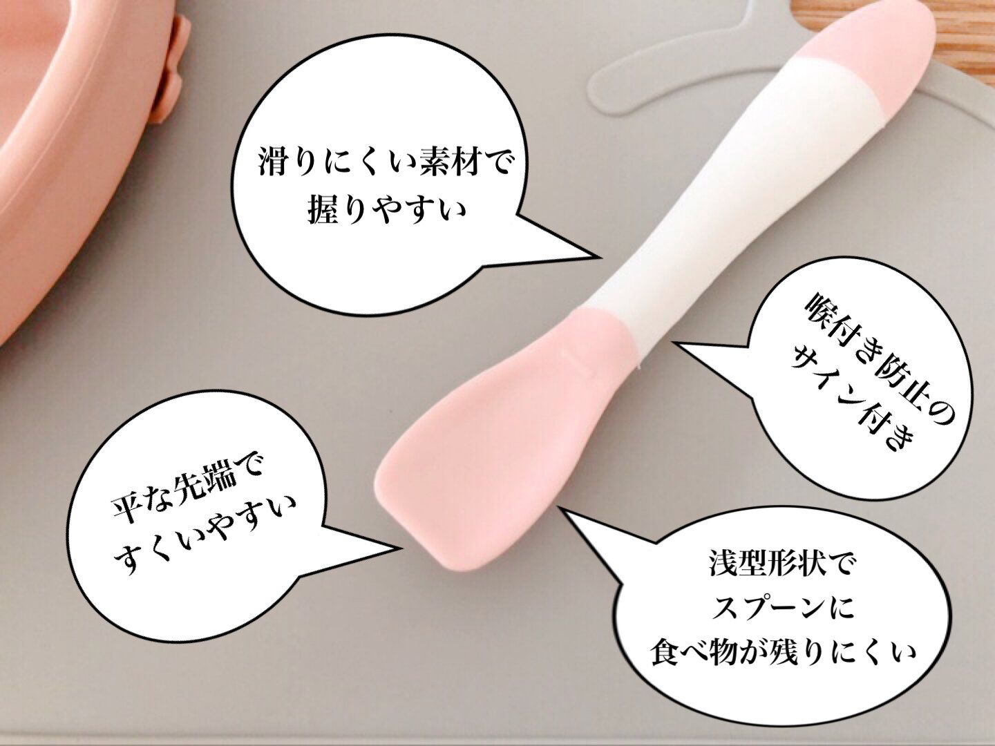 ・浅型形状で、食べ物がスプーンに残りにくい。