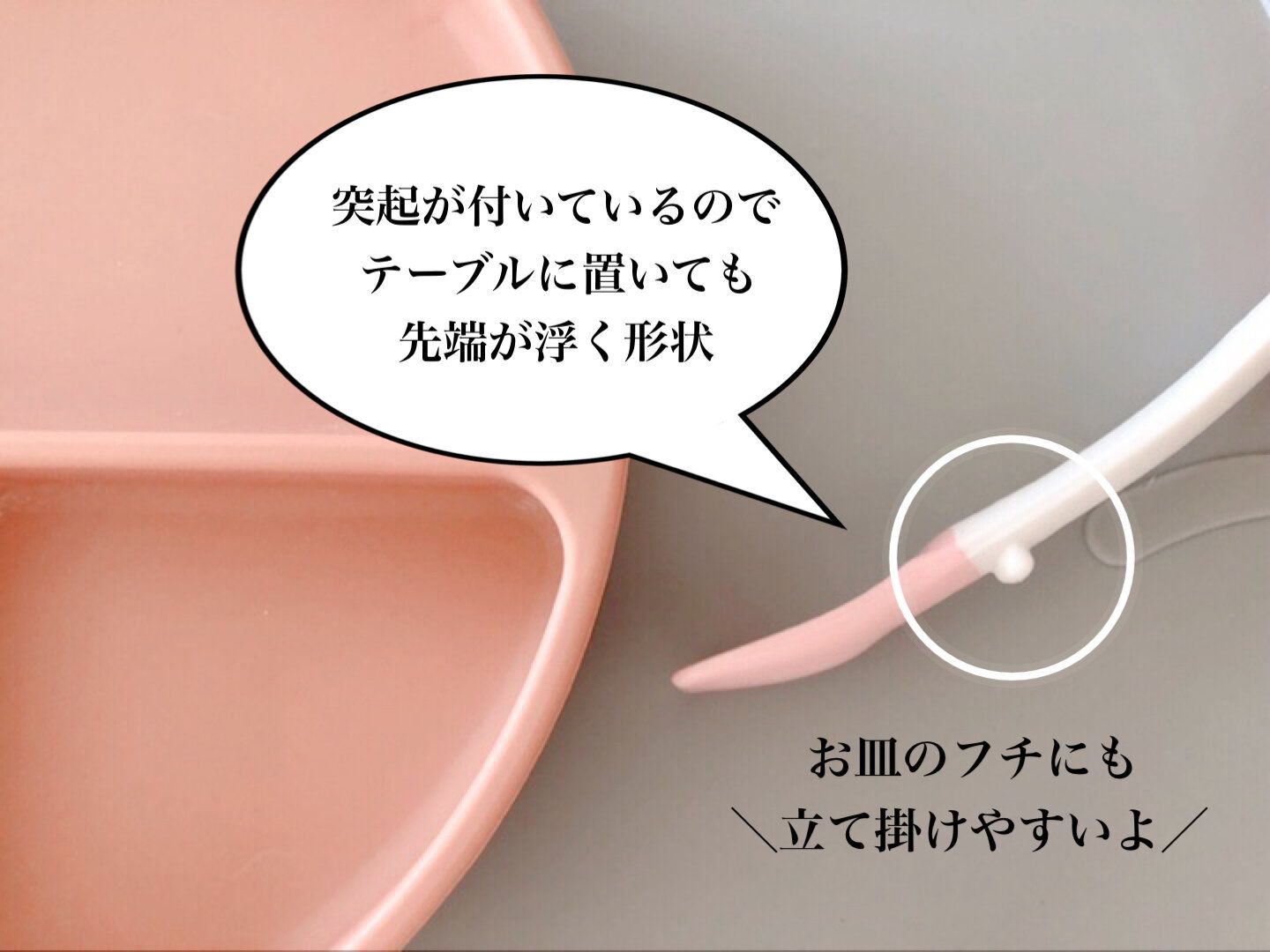 またお皿のフチにも立てかけやすいようになっています。
